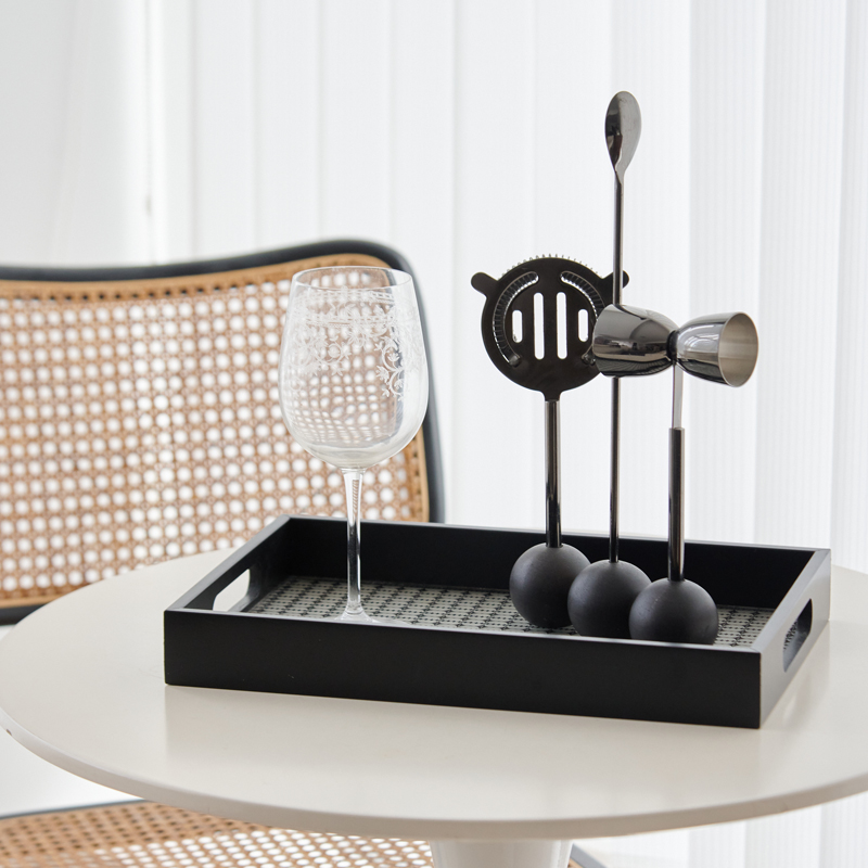 当前位置:首页>商品详情>现代简约长方形黑色透明底玻璃托盘居家桌面装饰品圆形收纳盘摆件
