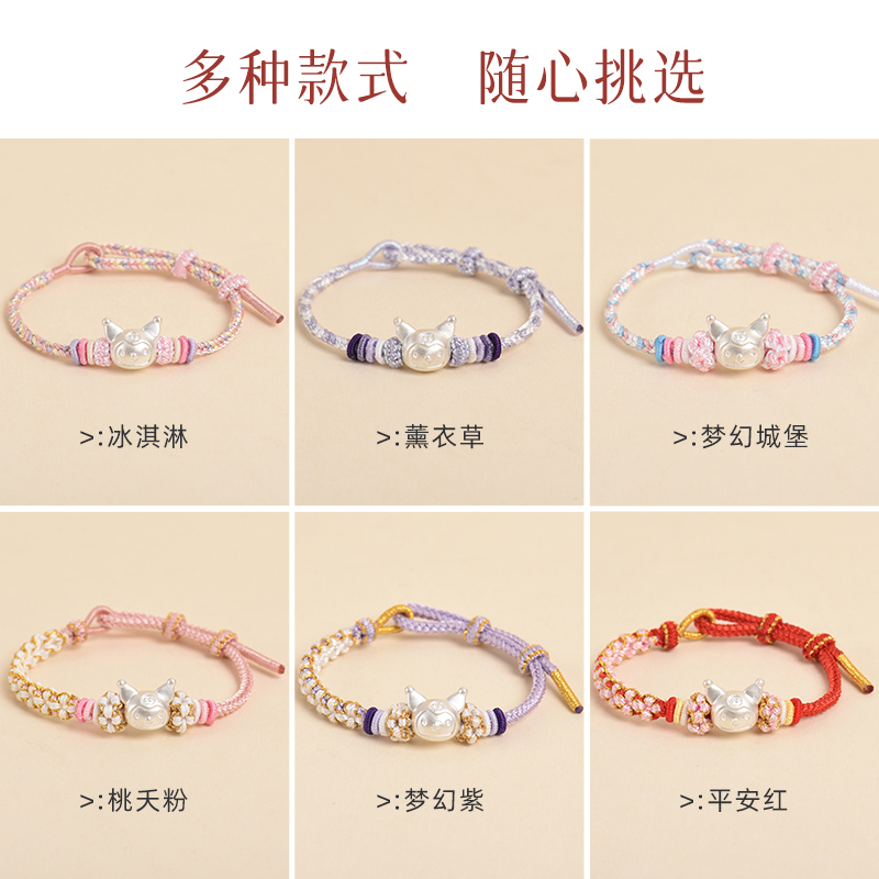 纯银库洛米手链999足银手绳卡通男女小朋友手工编织61儿童节礼物