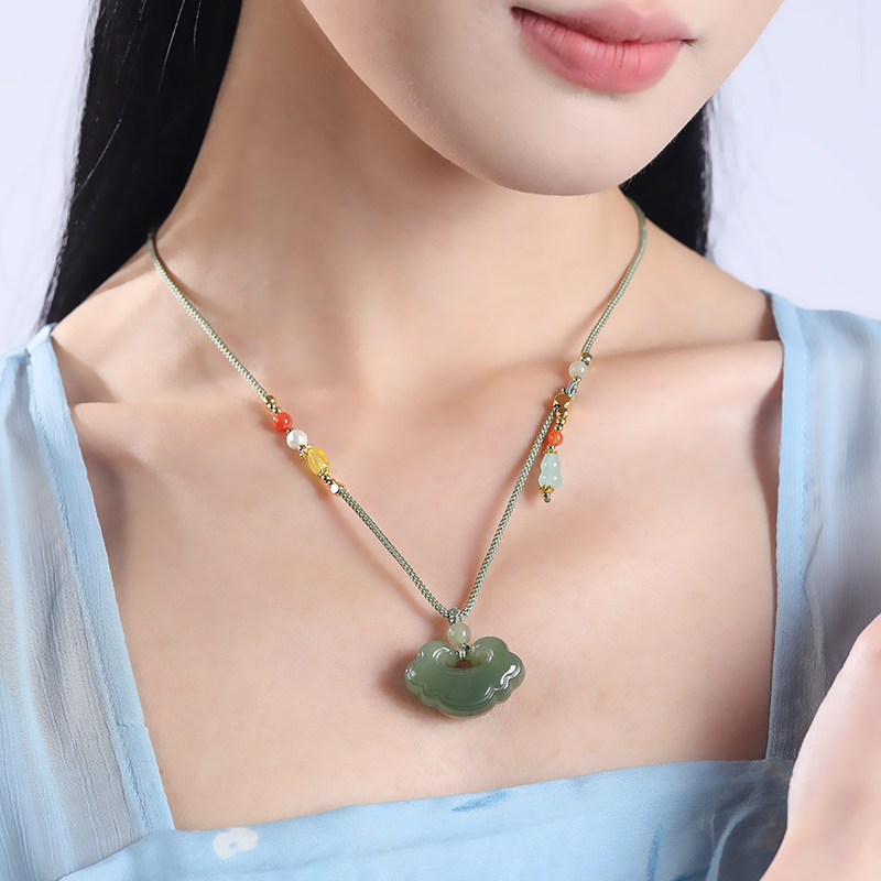 保真和田玉石平安如意锁吊坠男女宝宝儿童长命锁玉佩玉坠项链挂件