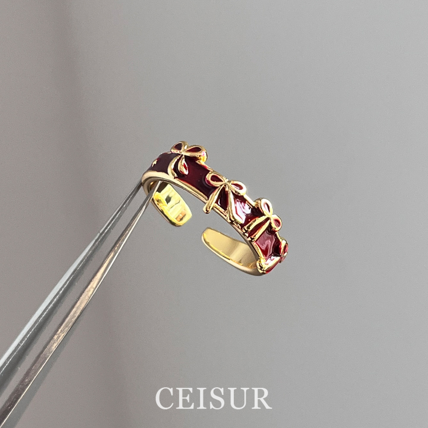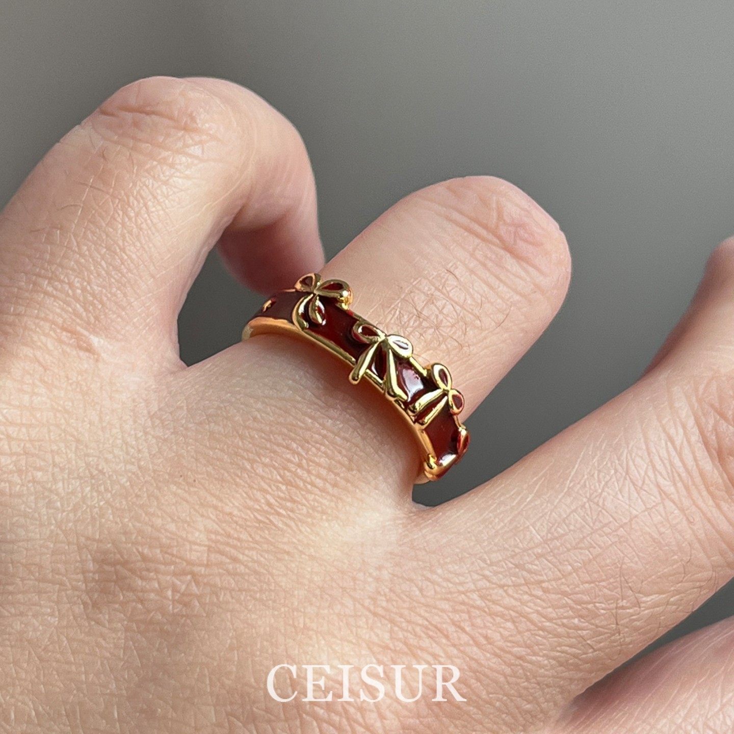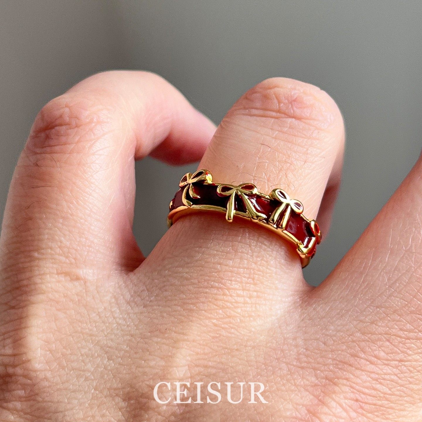 韩系ins风红色滴油蝴蝶结戒指时尚新年红显白时尚高级尾戒指环女