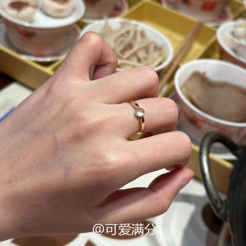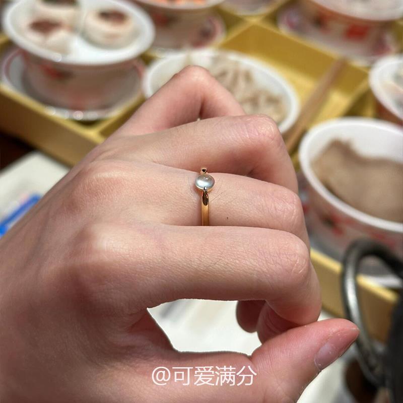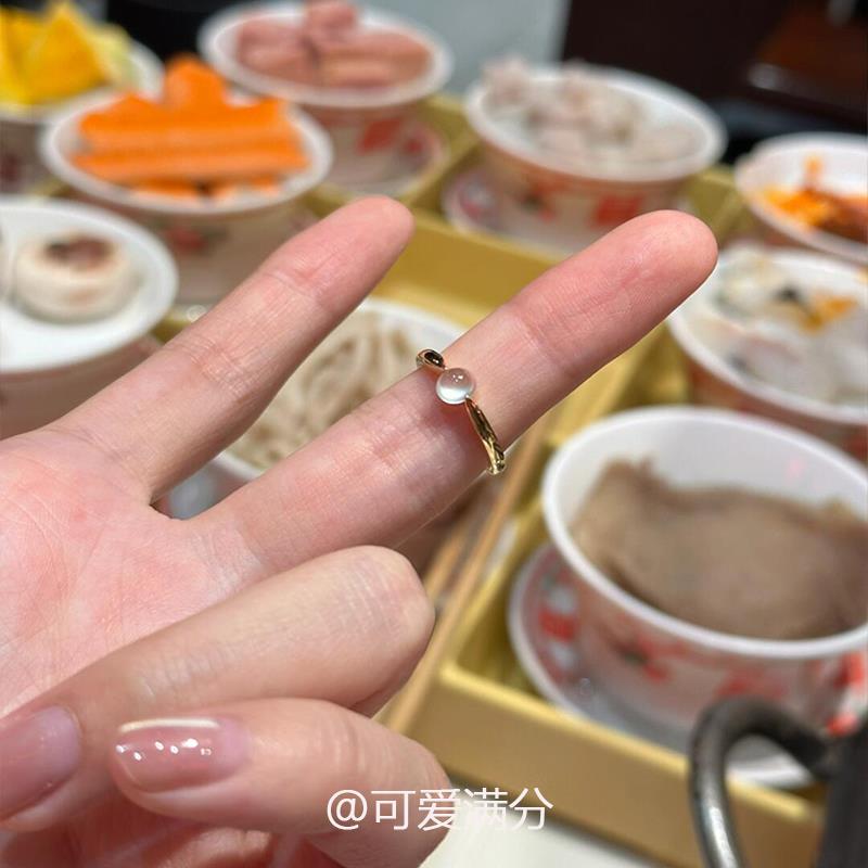 新中式仿冰透白玉髓蛋面戒指女小众设计轻奢高级感指环百搭食指戒