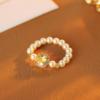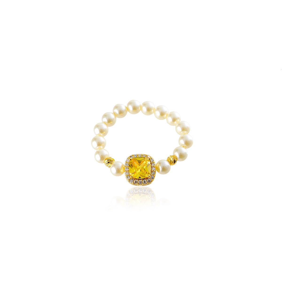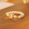 2025新款方糖珍珠戒指小众设计高级感气质百搭黄宝石几何弹力戒指