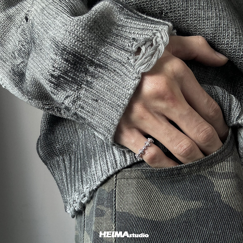 十字花纯银尾戒男款小拇指小众设计感简约高级感戒指冷淡风可调节