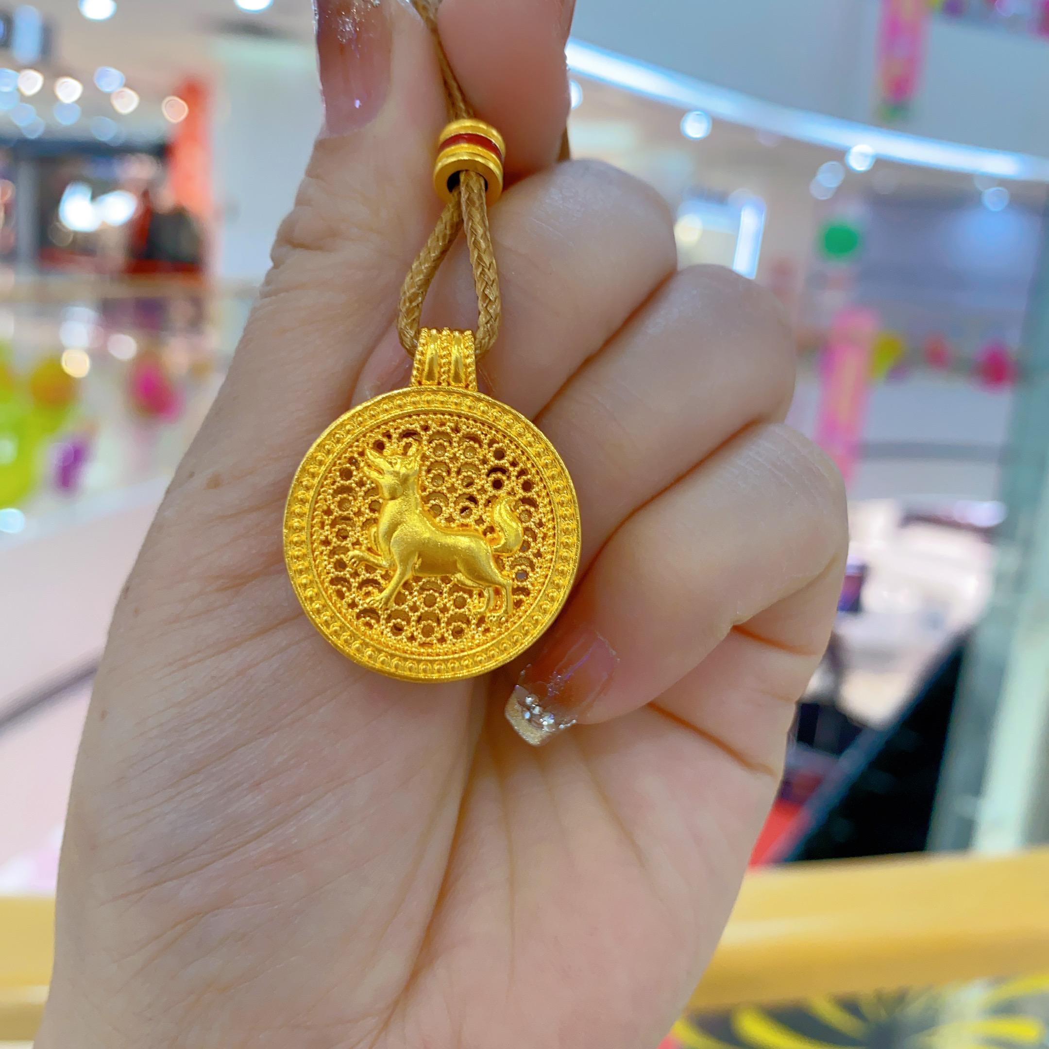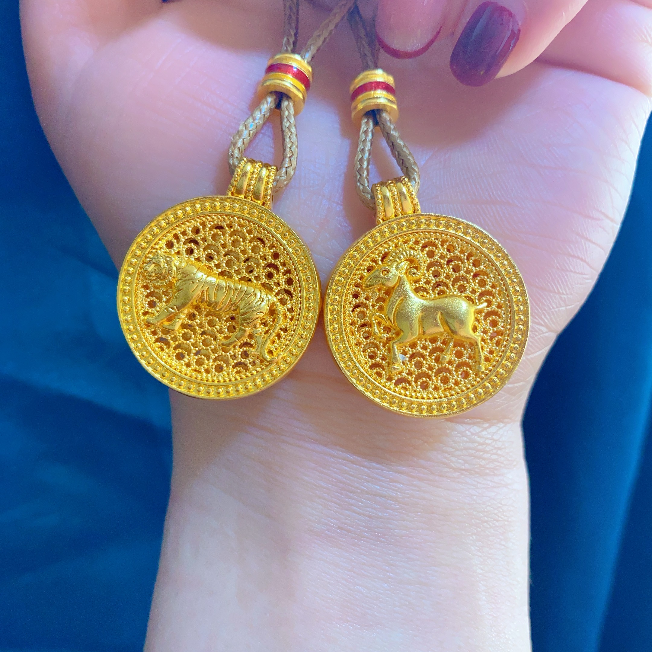 黄金包银吊坠2025十二生肖吊坠本命镂空錾刻小圆盘送编绳
