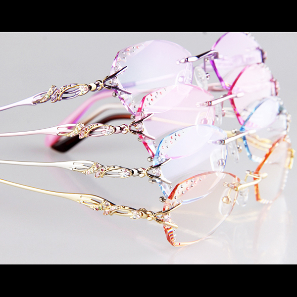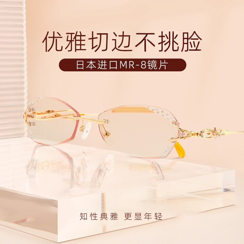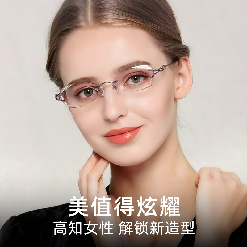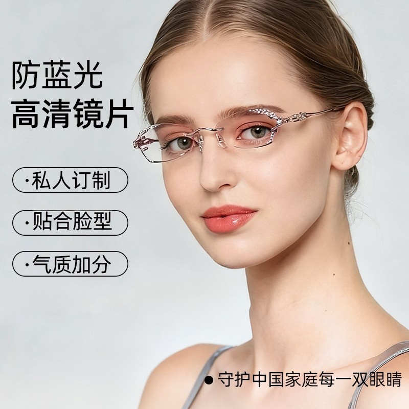 无框眼镜女高级感钻石切边眼镜配眼镜成品近视眼镜架变色眼镜框