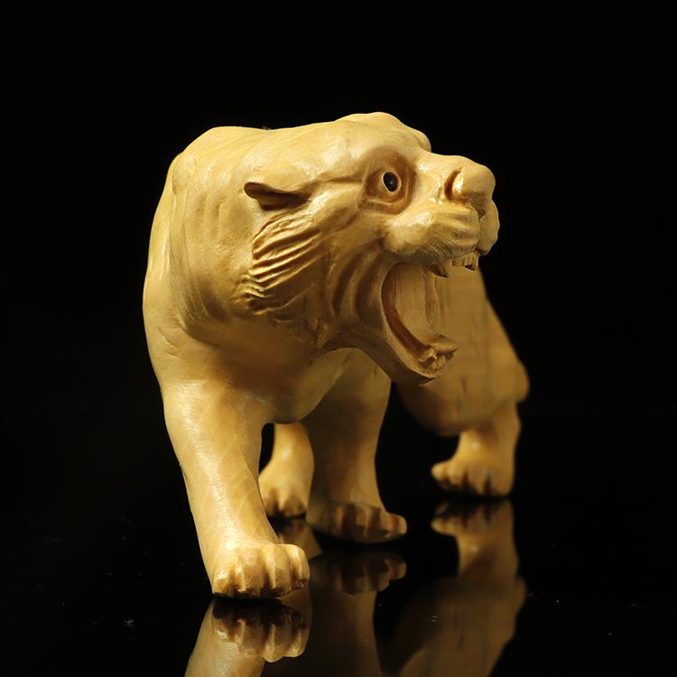 黄杨木雕老虎创意家居装饰品中式工艺品现代摆件动物木质雕刻把玩