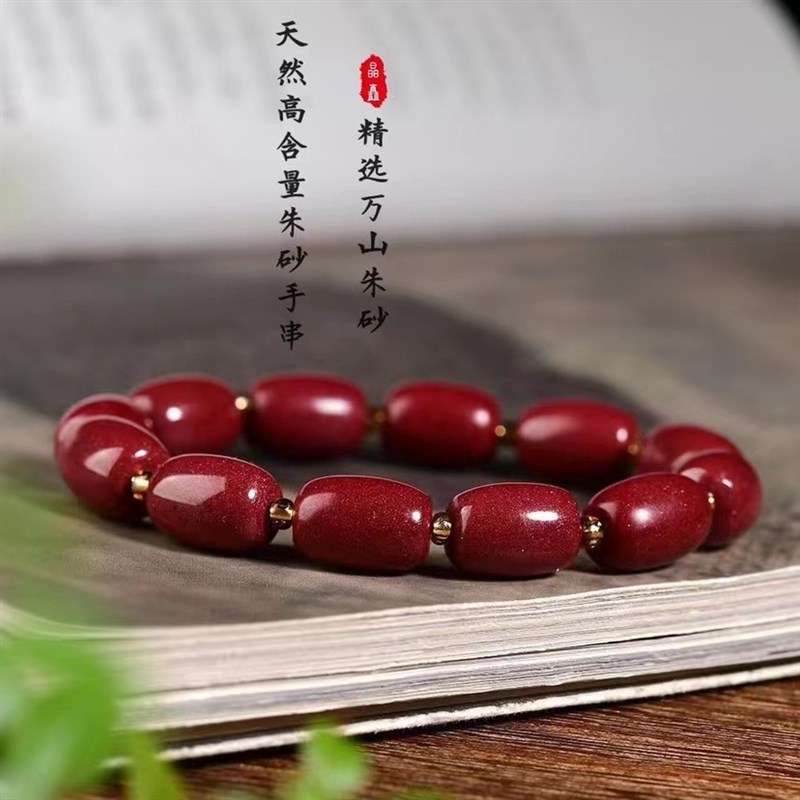 速发原矿老型珠朱砂紫金砂桶珠手串情侣本命年手串转运