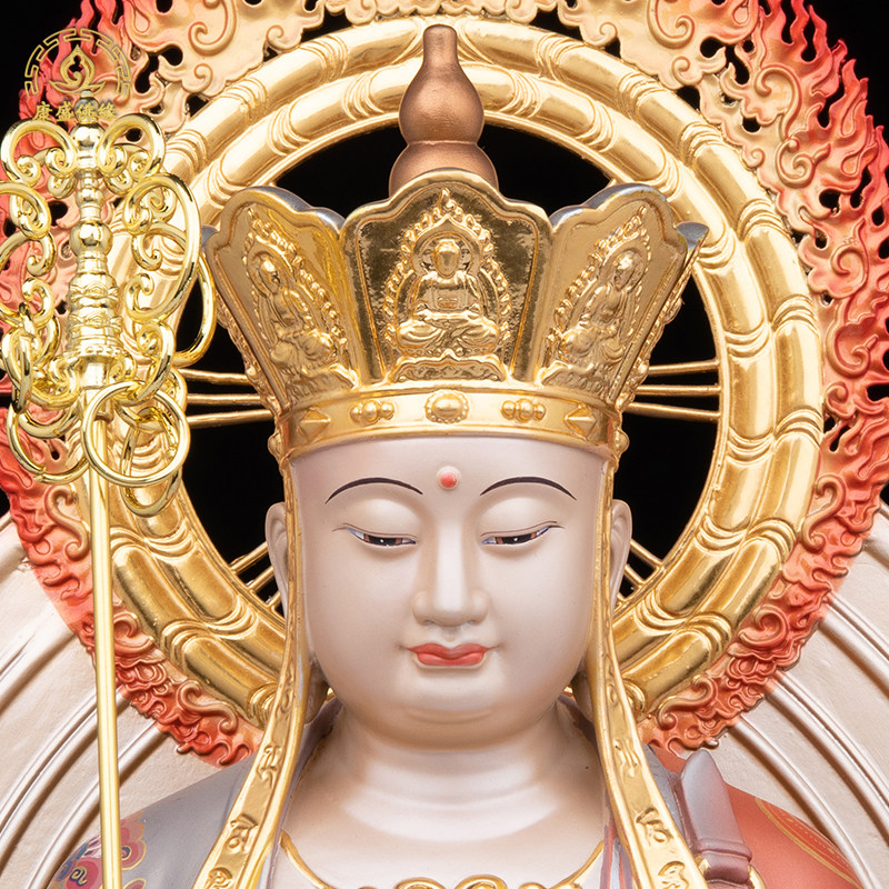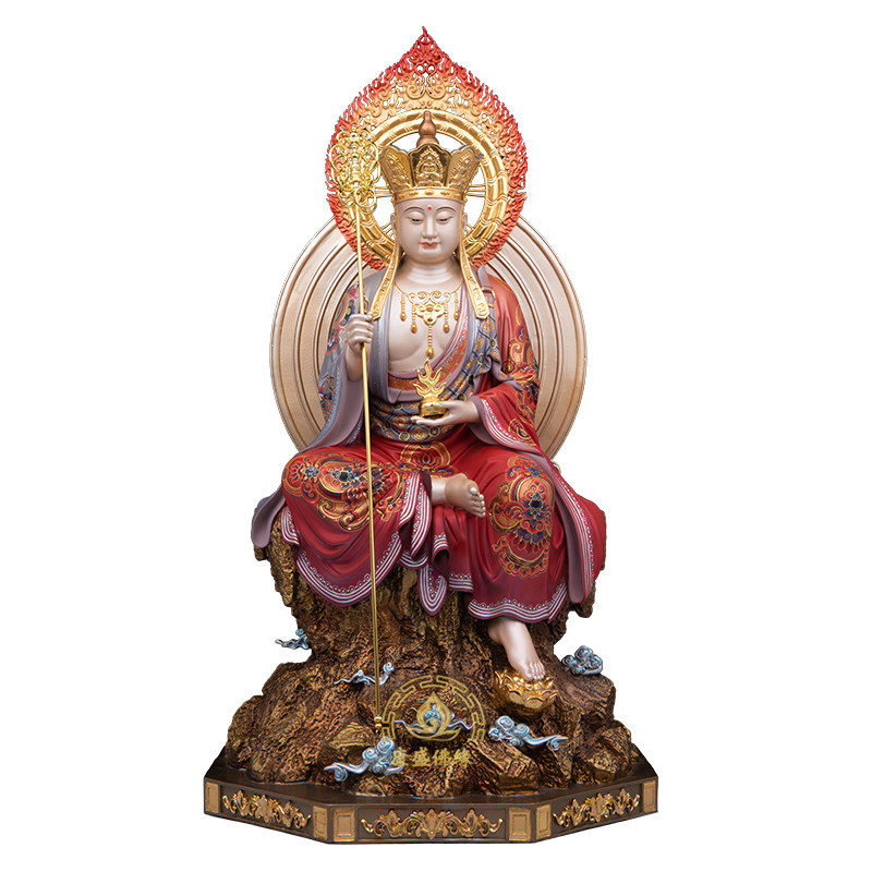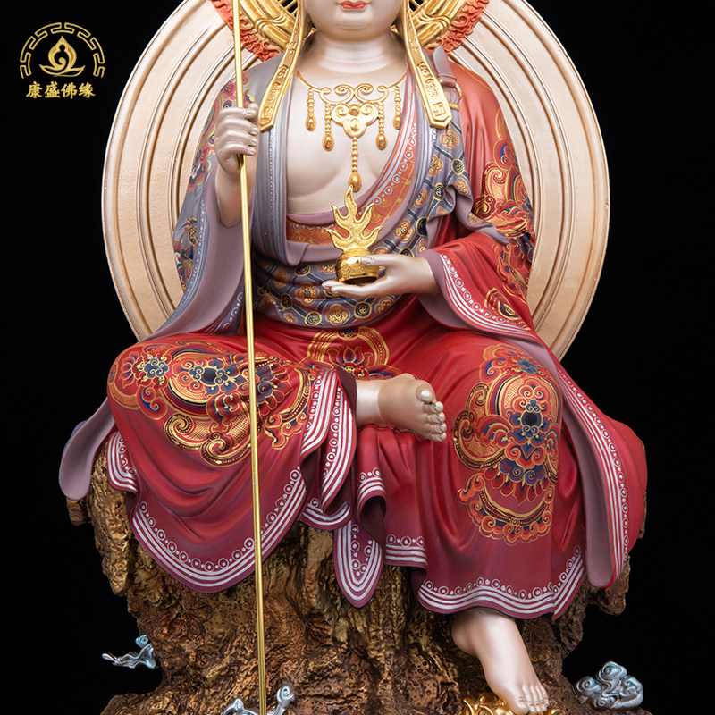 地藏王佛像纯铜珐琅彩谛听地藏王菩萨铜像摆件家用客厅九华山神像