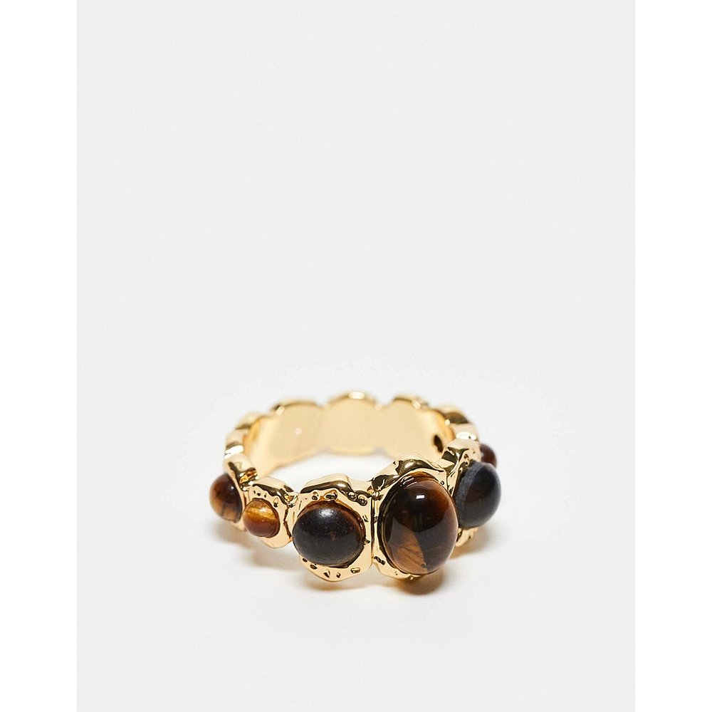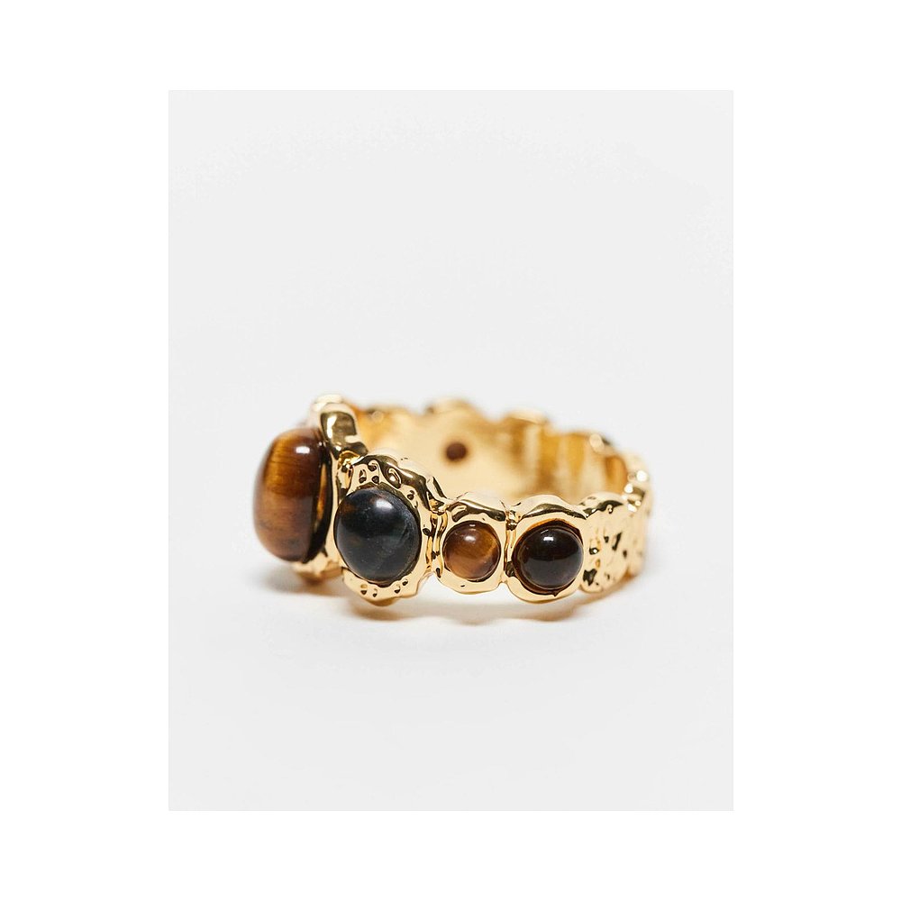 香港直邮ASOS 女士 14k real 镀金虎眼石半珍贵晶石镶嵌设计戒指(
