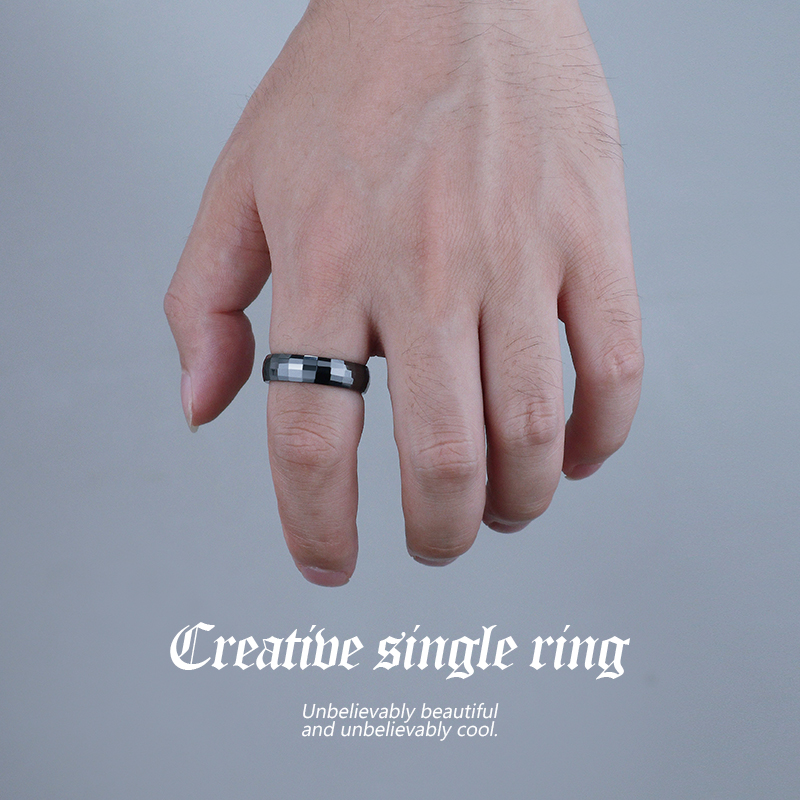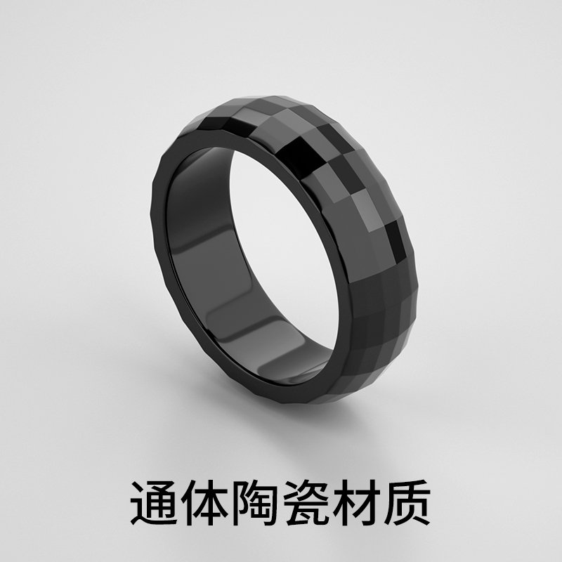 陶瓷戒指男生食指戒指环宽版潮款切面车花时尚黑色个性单身首饰品