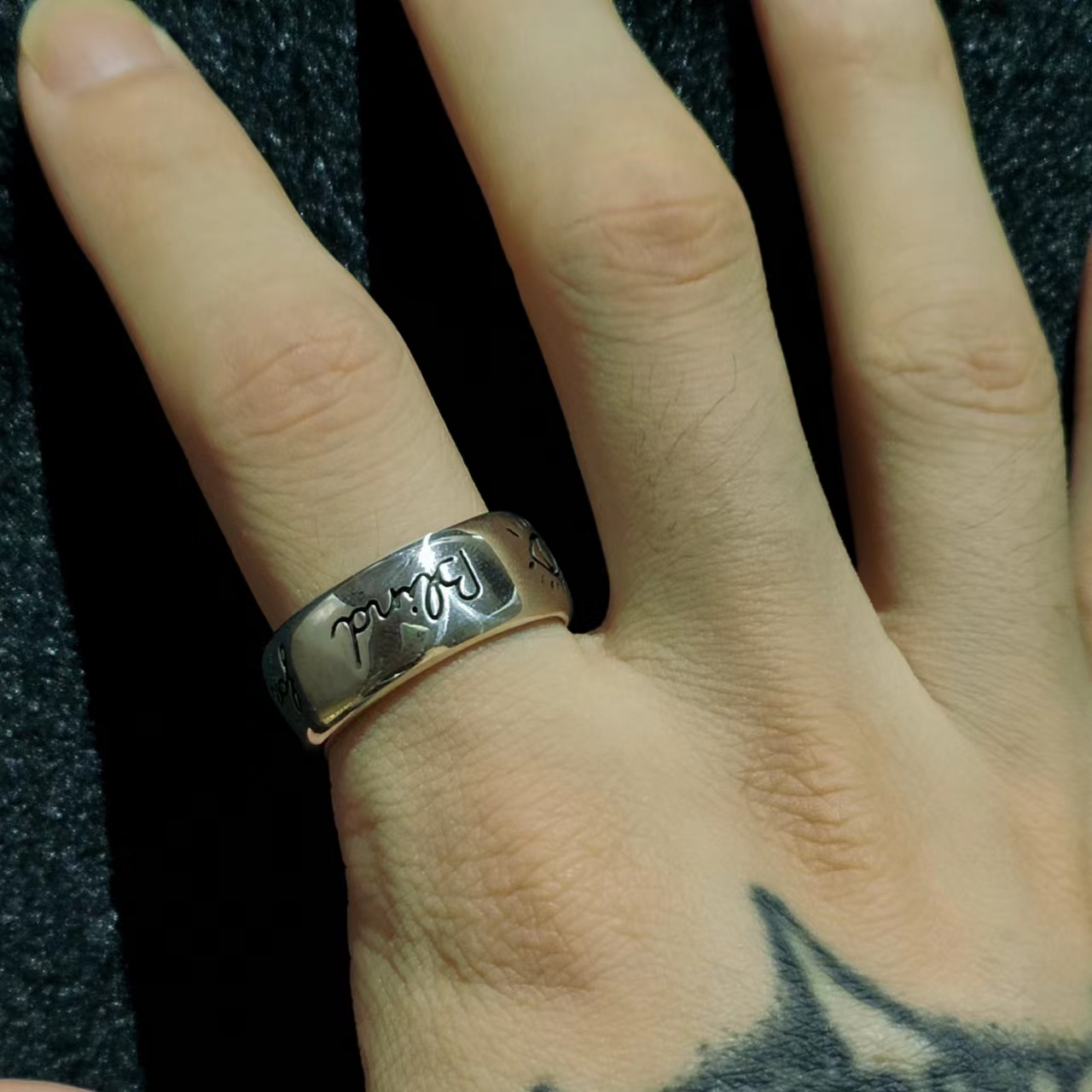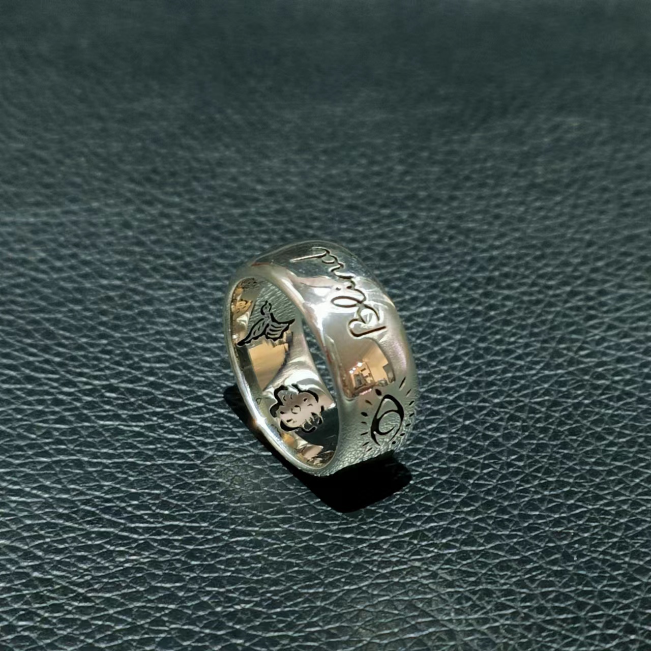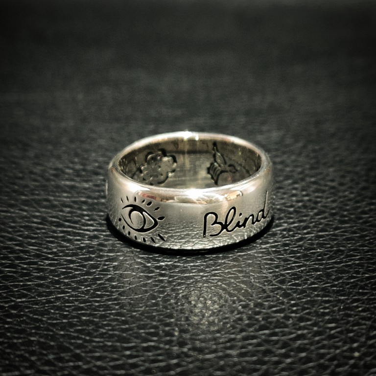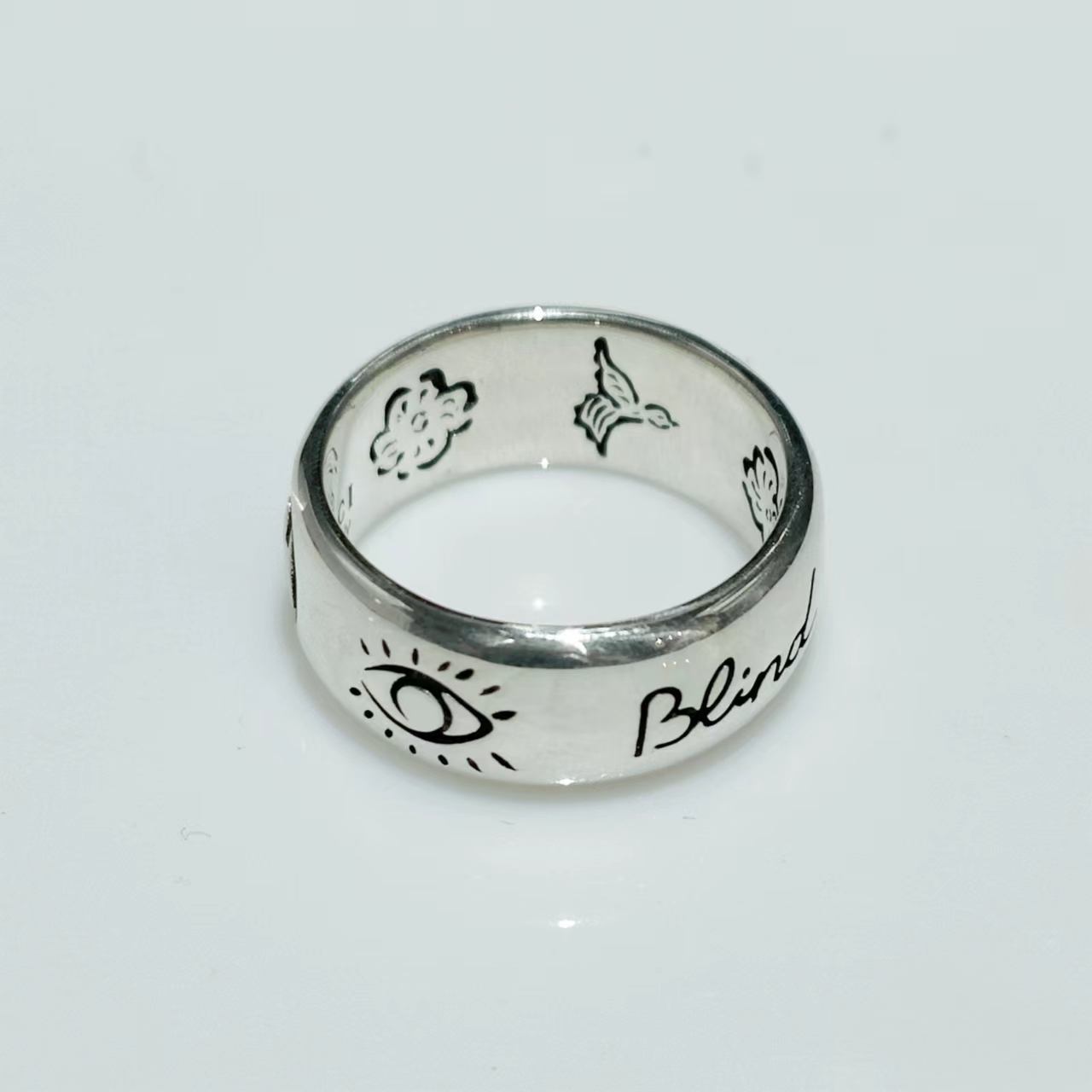 ROCKAGE纯银S925Blind love无畏的爱无畏眼心花鸟时尚情侣宽戒指