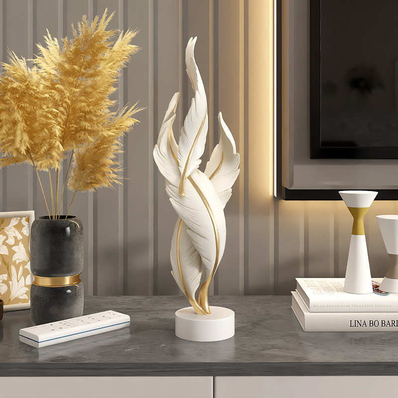 羽毛艺术摆件高级感小众客厅入户玄关装饰办公室桌面开业乔迁礼物