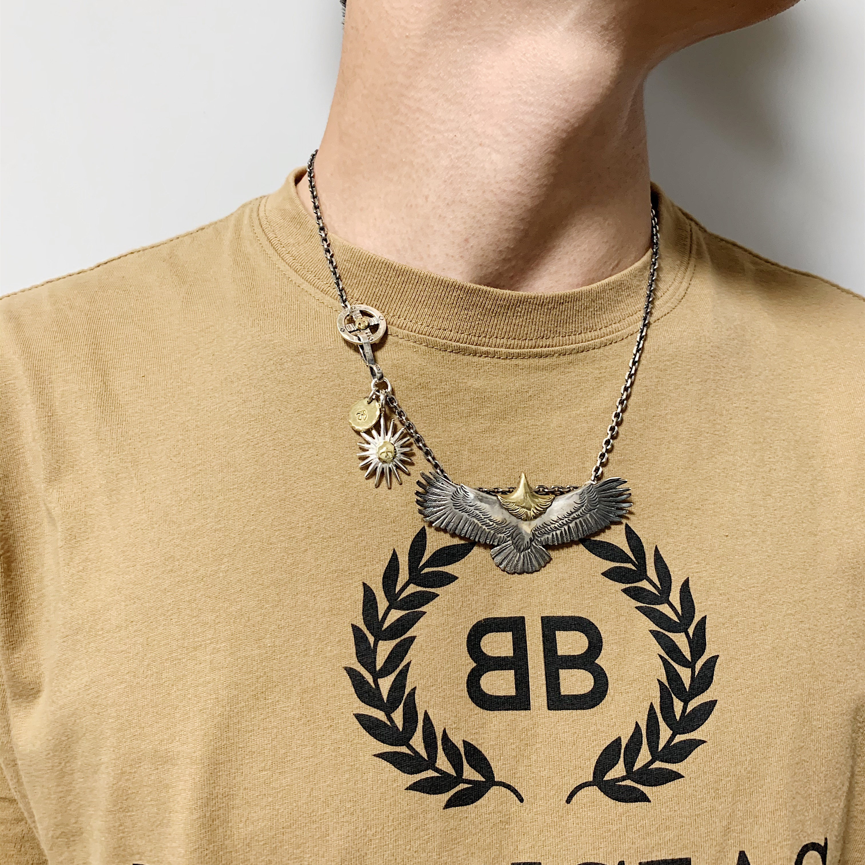 不同银匠 高桥风格925纯银铜头大中小老鹰吊坠手作霸气男项链配饰