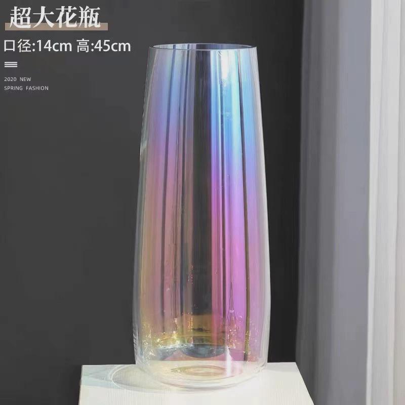 特大号富贵竹玻璃花瓶透明水养插花客厅落地极光幻彩竹节水培大号