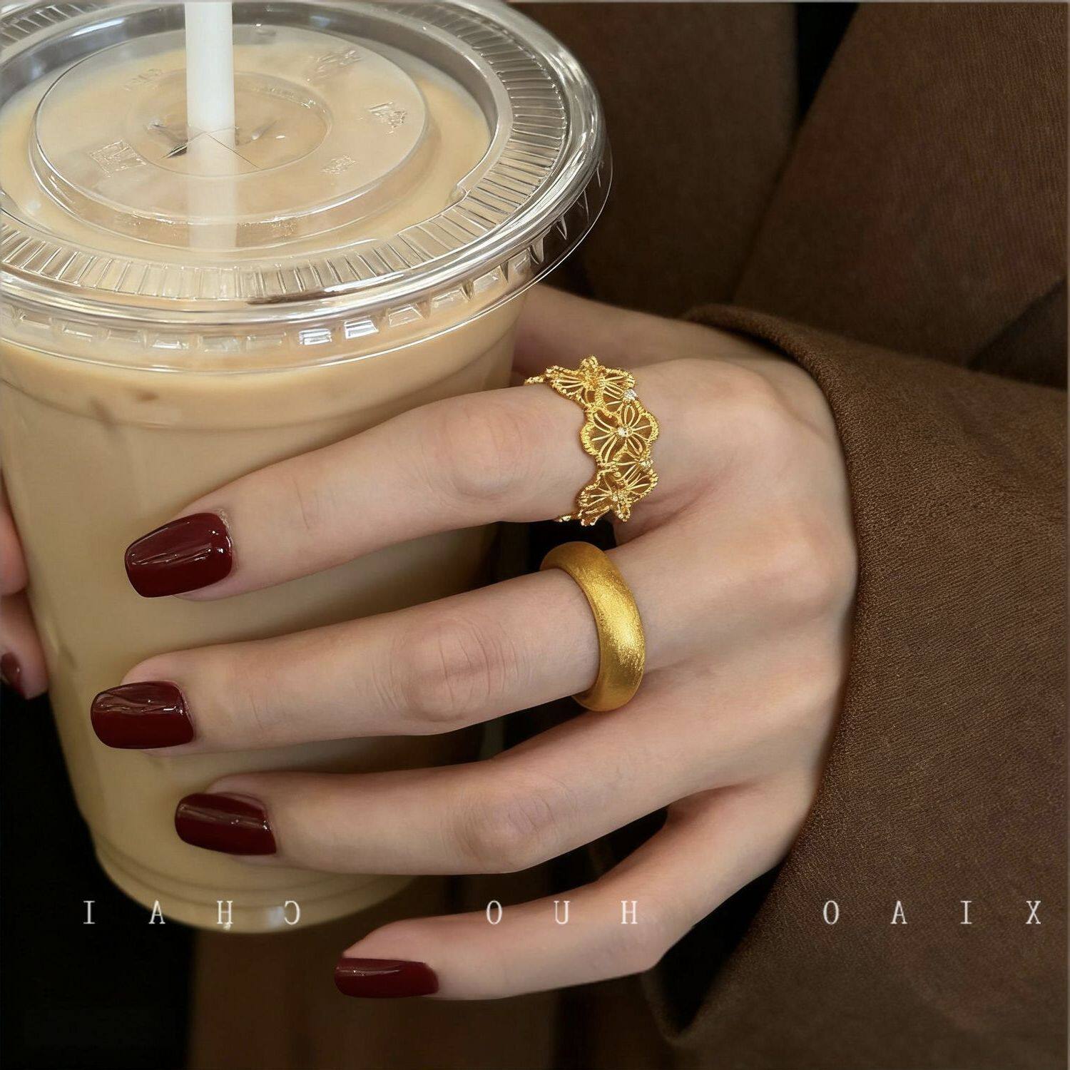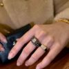 vintager中古宽面黑色椭圆闪钻戒指女轻奢小众高级精致食指戒指环