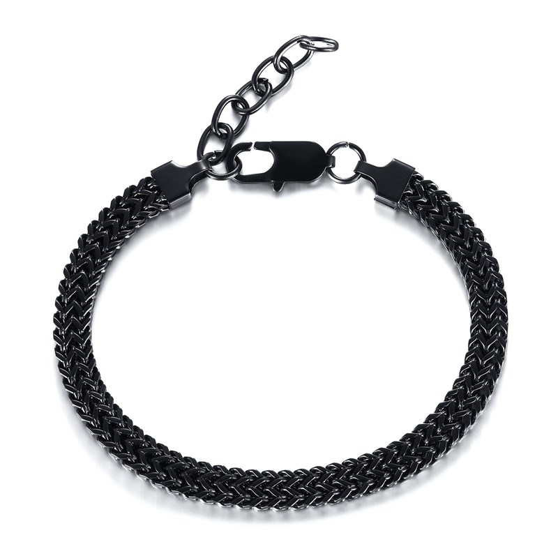 男士简约时尚不锈钢链条手链黑色双层 欧H美饰品 泉溪水BR-1120