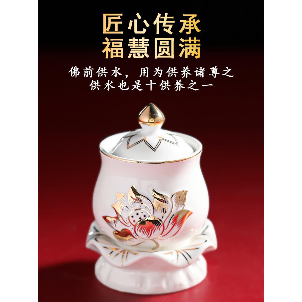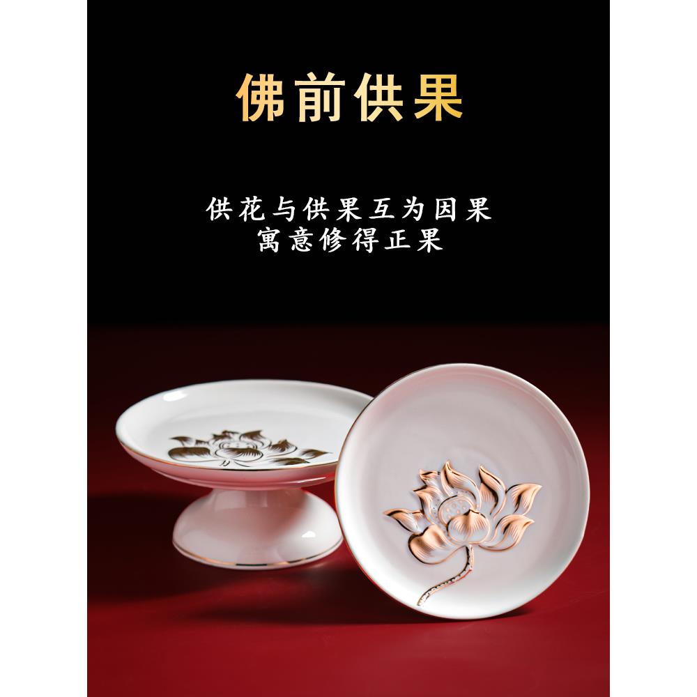陶瓷供果果盘供盘家用供水杯供佛杯佛前上香炉烧香炉莲花供奉套装