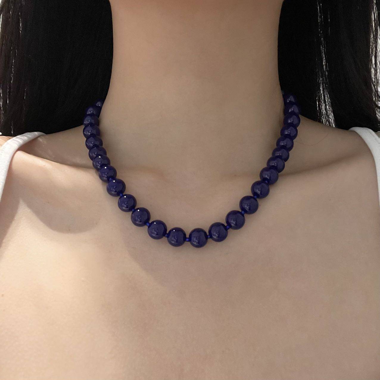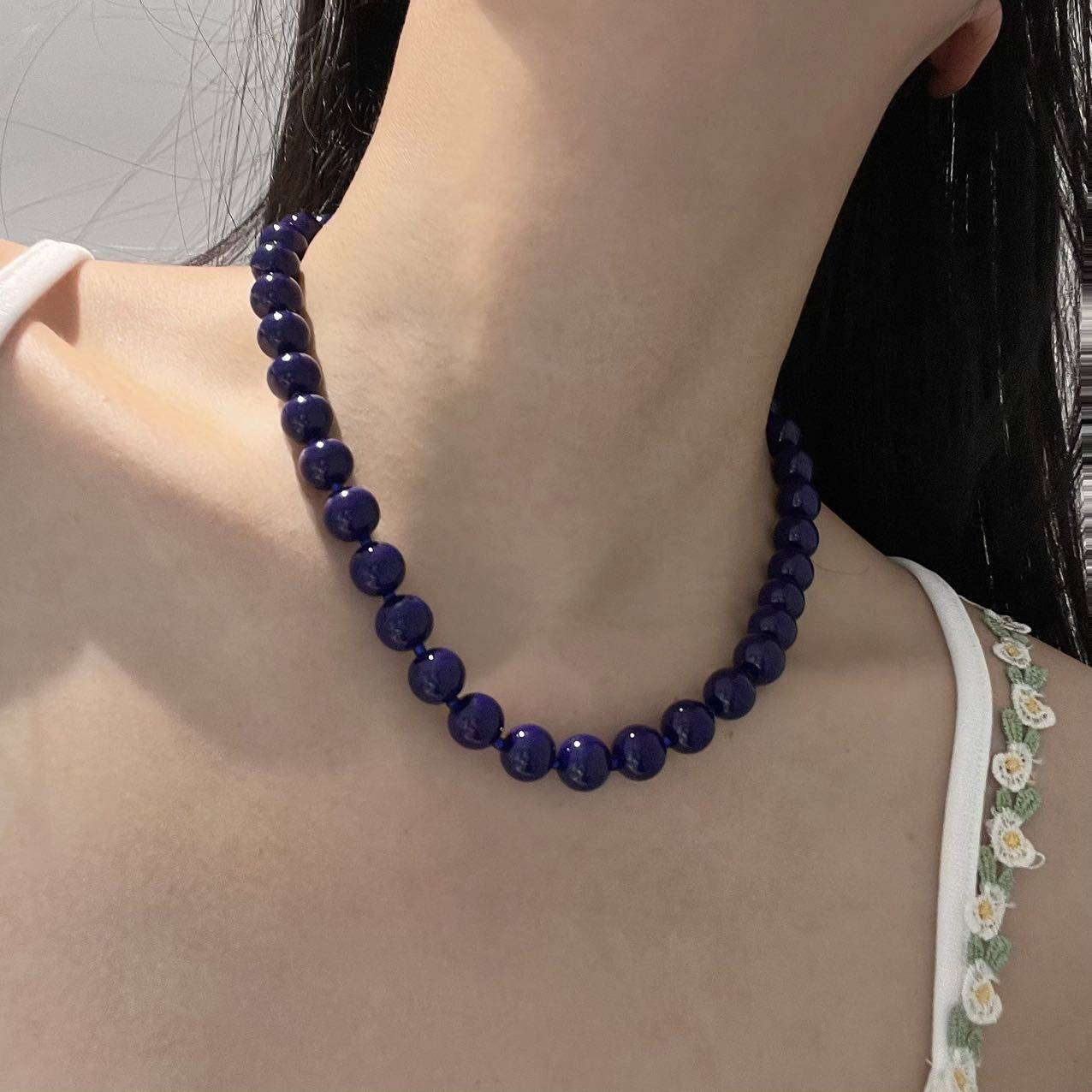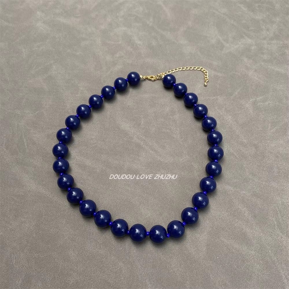 简约小众藏蓝色串珠圆珠设计高级感颈链项链时尚气质百搭锁骨链女