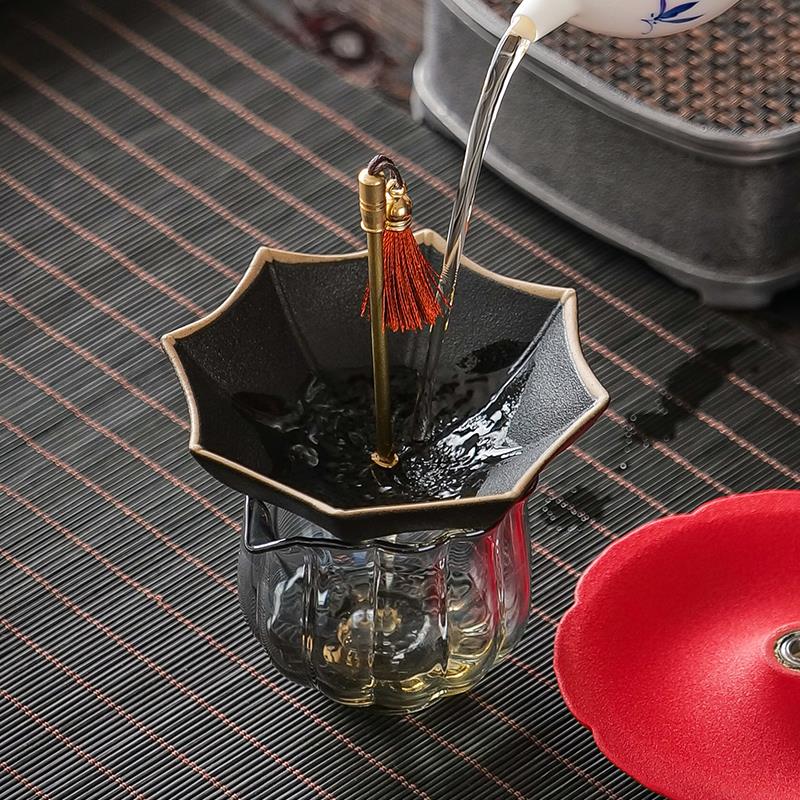 创意陶瓷旋转雨伞过滤茶叶套组功夫茶具茶道配件茶漏桌面装饰摆件
