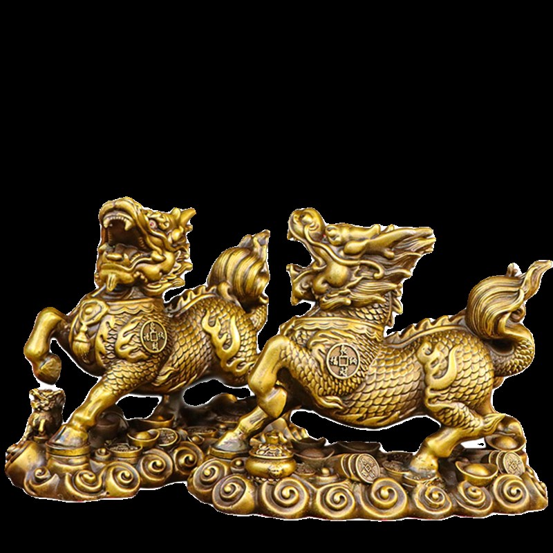 纯铜祥云麒麟摆件一对q商铺门口家用玄关桌面装饰黄铜骐麟瑞兽神