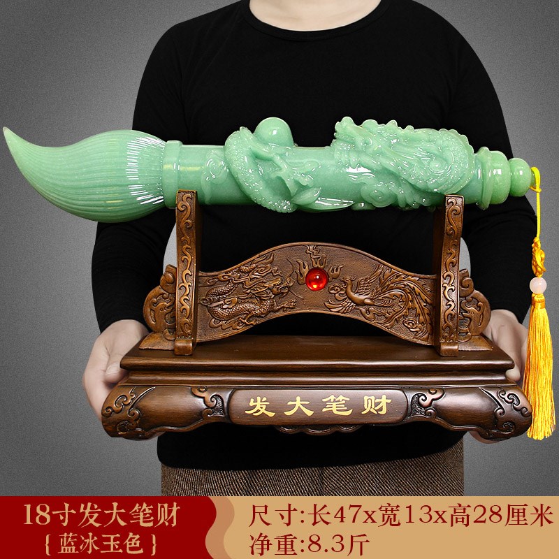 玉石毛笔摆件发大笔财工艺品客厅博古架酒L柜装饰店铺前台开业礼