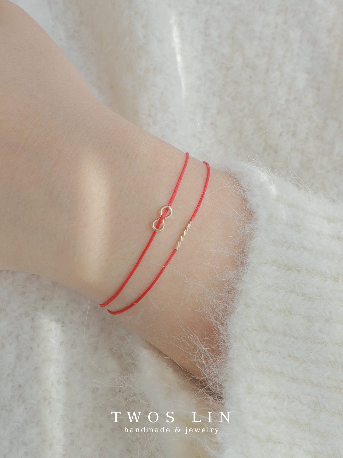 手工制作新年红绳14K包金无线符号超细红绳手绳本命年小金管手链