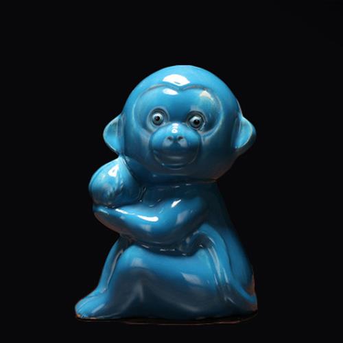 小猴子可爱的黄色红色陶瓷器猴子生肖摆件风水用的土陶器猴风水猴