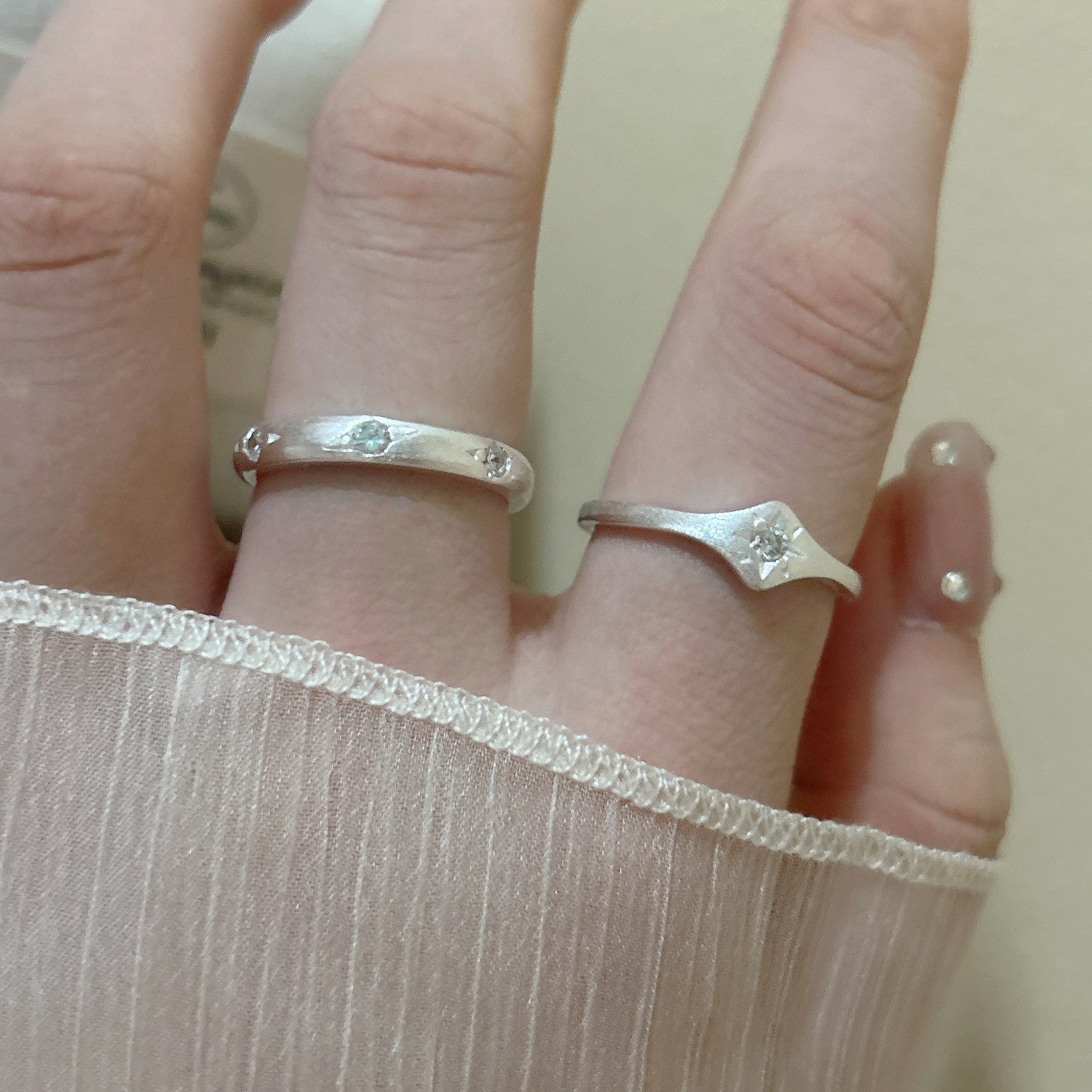 甜美星星拉丝戒指女百搭时尚气质素圈叠戴开口指环小众设计食指戒
