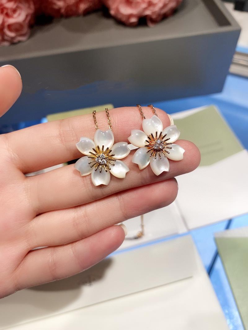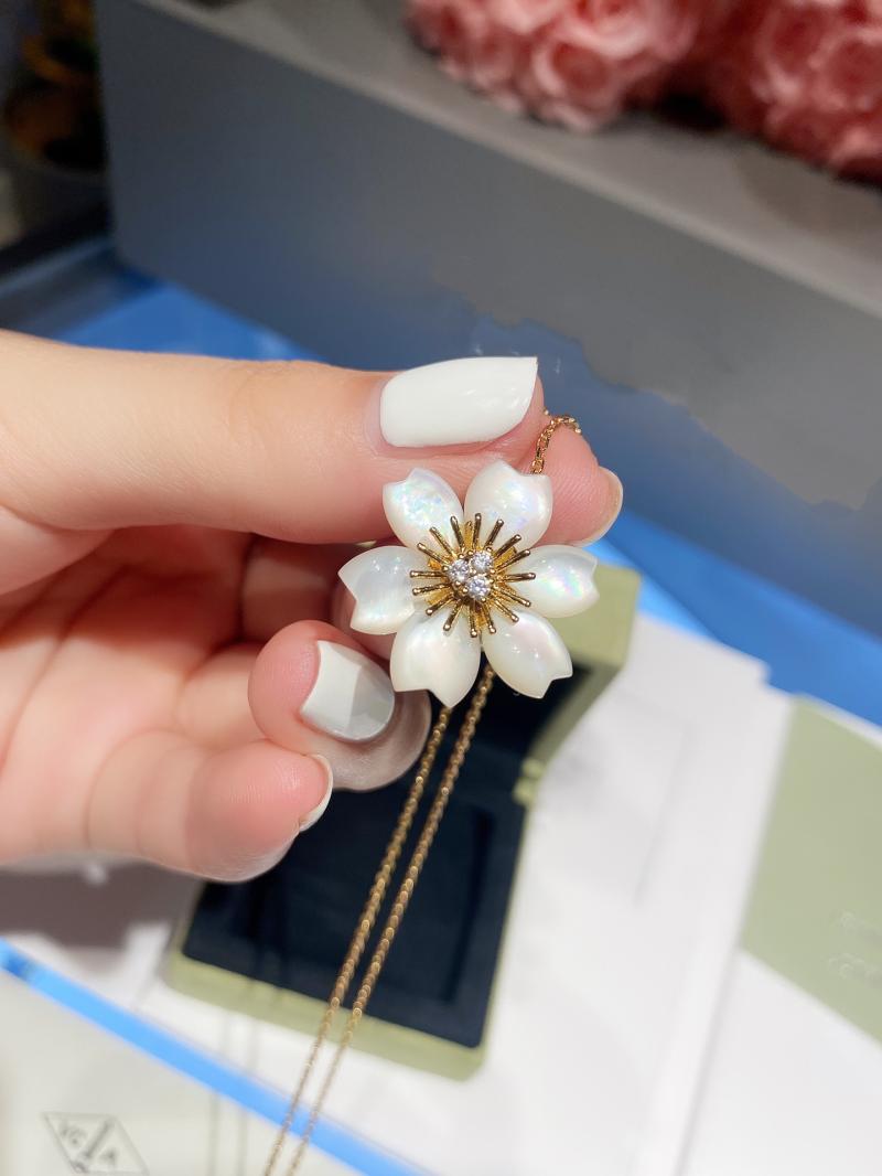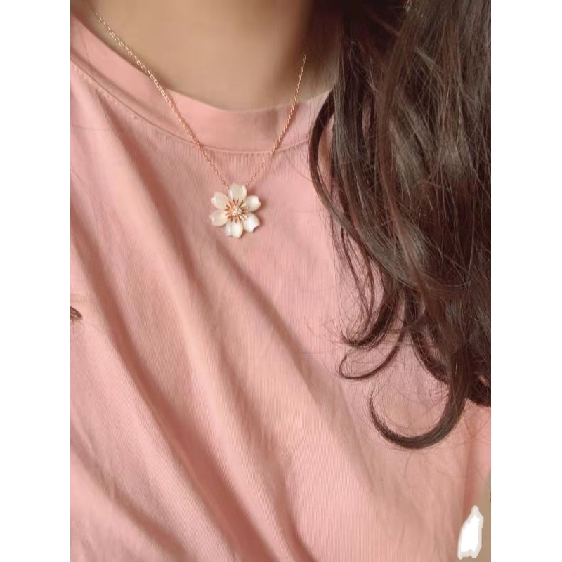 日韩新款订制V金材质白贝母花瓣项链小清新锁骨链 简约清爽短款