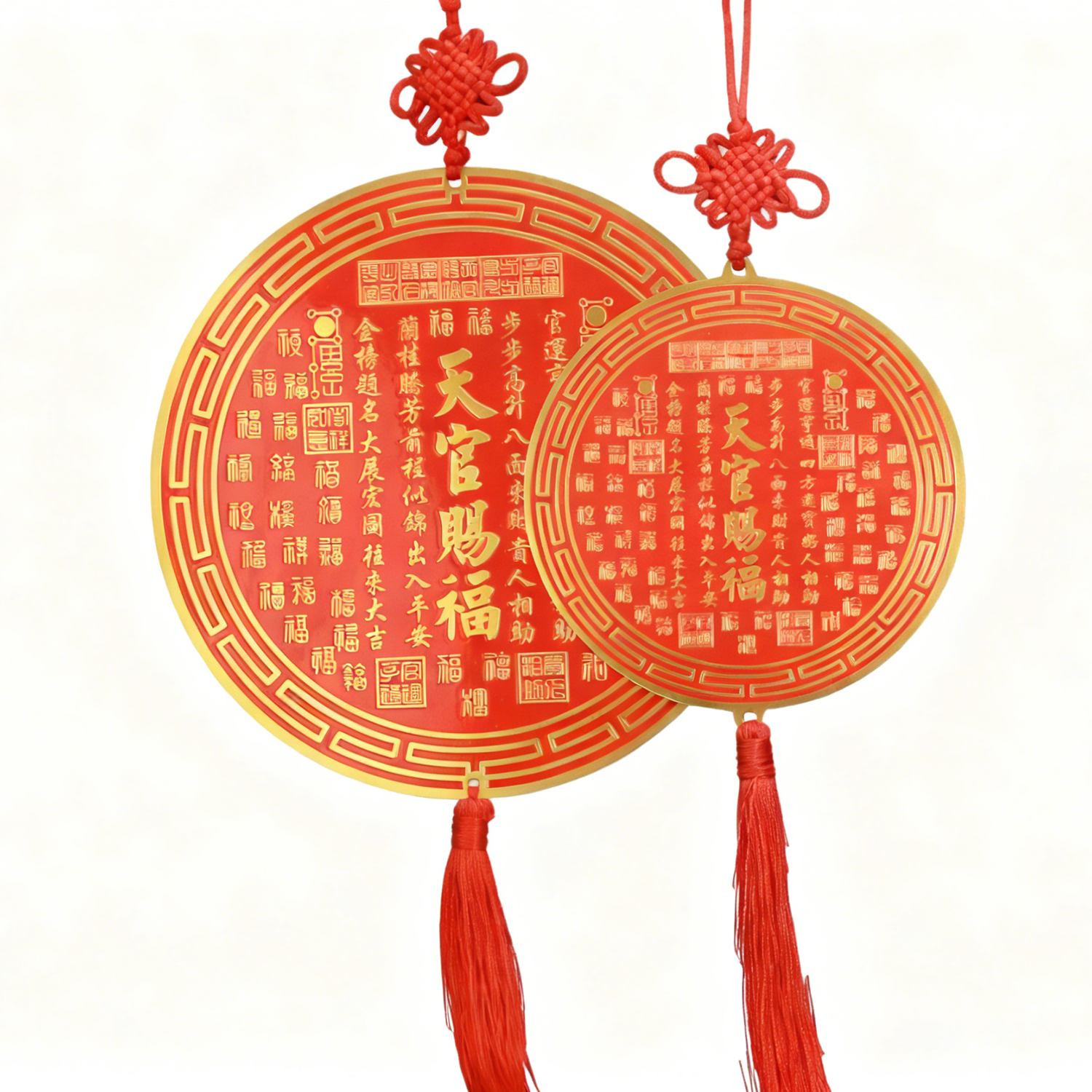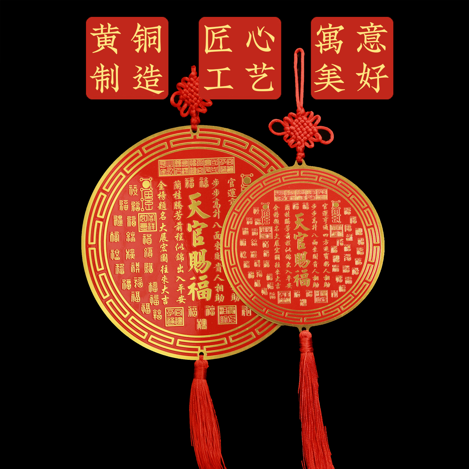 黄铜圆形天官赐福挂件乔迁大门对邻居大门电梯解决门对门家居摆件