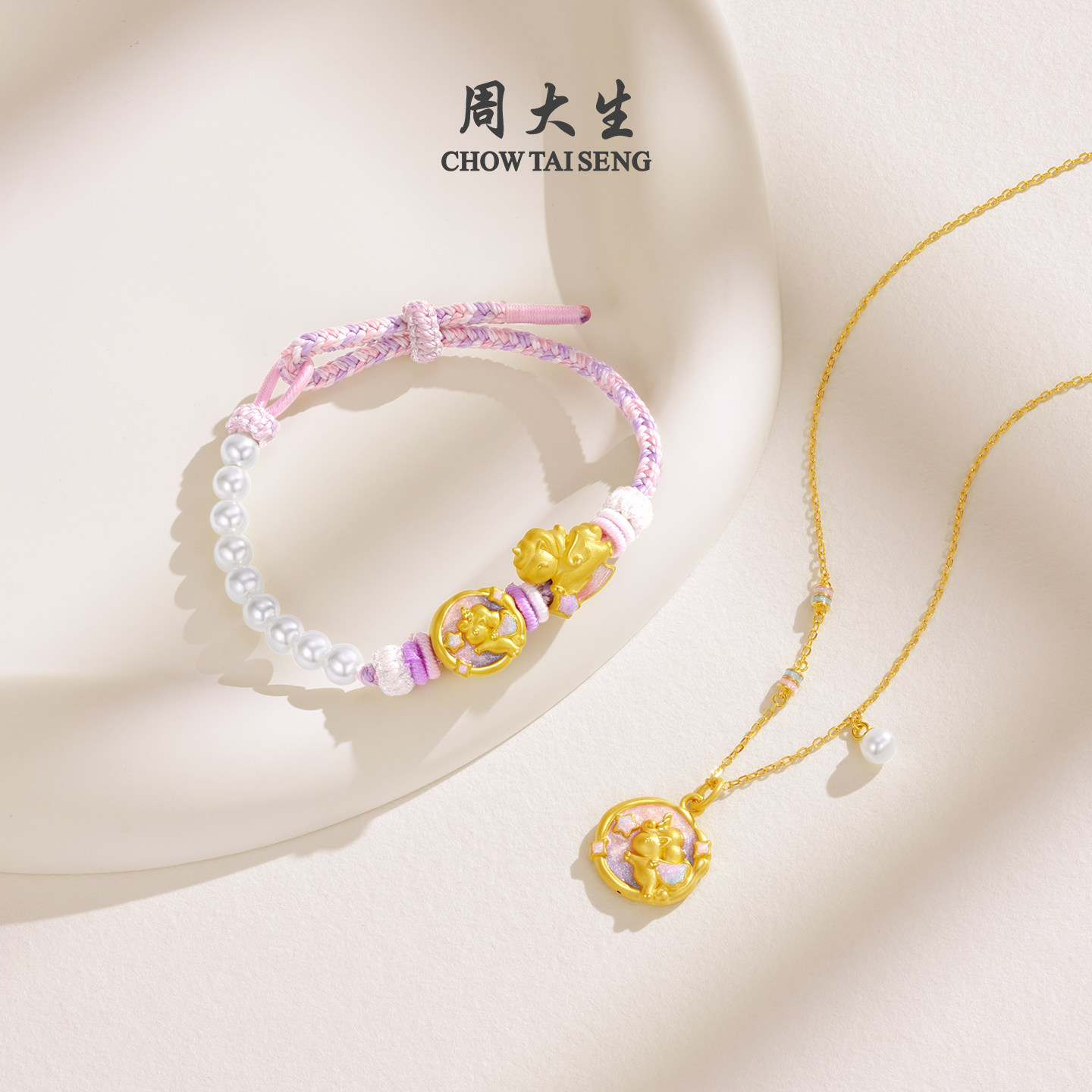 周大生黄金独角兽吊坠女款足金硬金荧光珐琅生肖马挂坠圣诞礼物