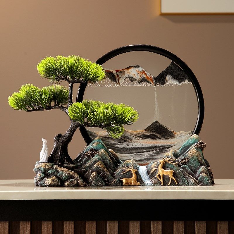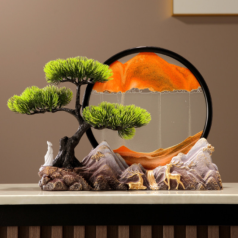 新中式创意解压办公室酒柜电视柜玄关流沙画摆件沙漏摆设乔迁礼物