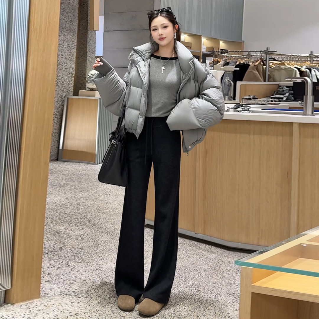 当前位置:首页>商品详情>2025秋冬新款羊毛加绒加厚微喇裤女高腰垂感直筒显瘦显腿长喇叭裤