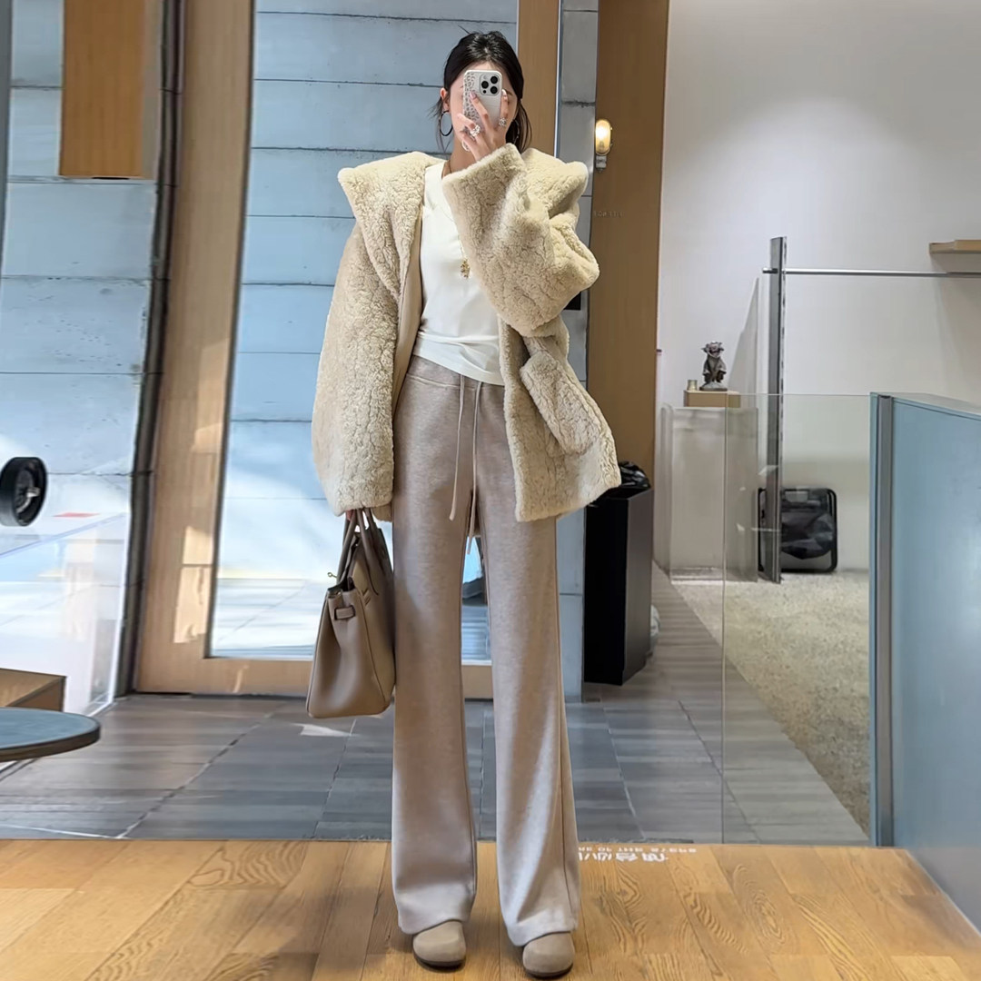 2025秋冬新款羊毛加绒加厚微喇裤女高腰垂感直筒显瘦显腿长喇叭裤