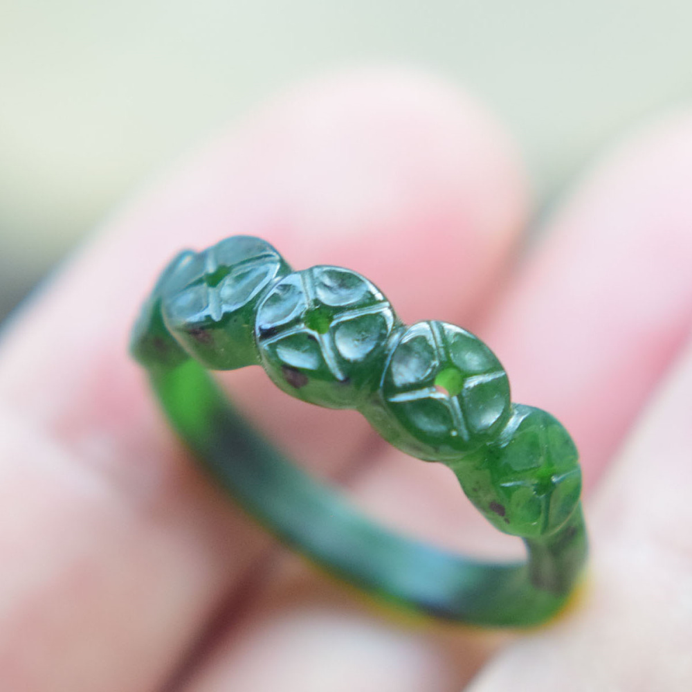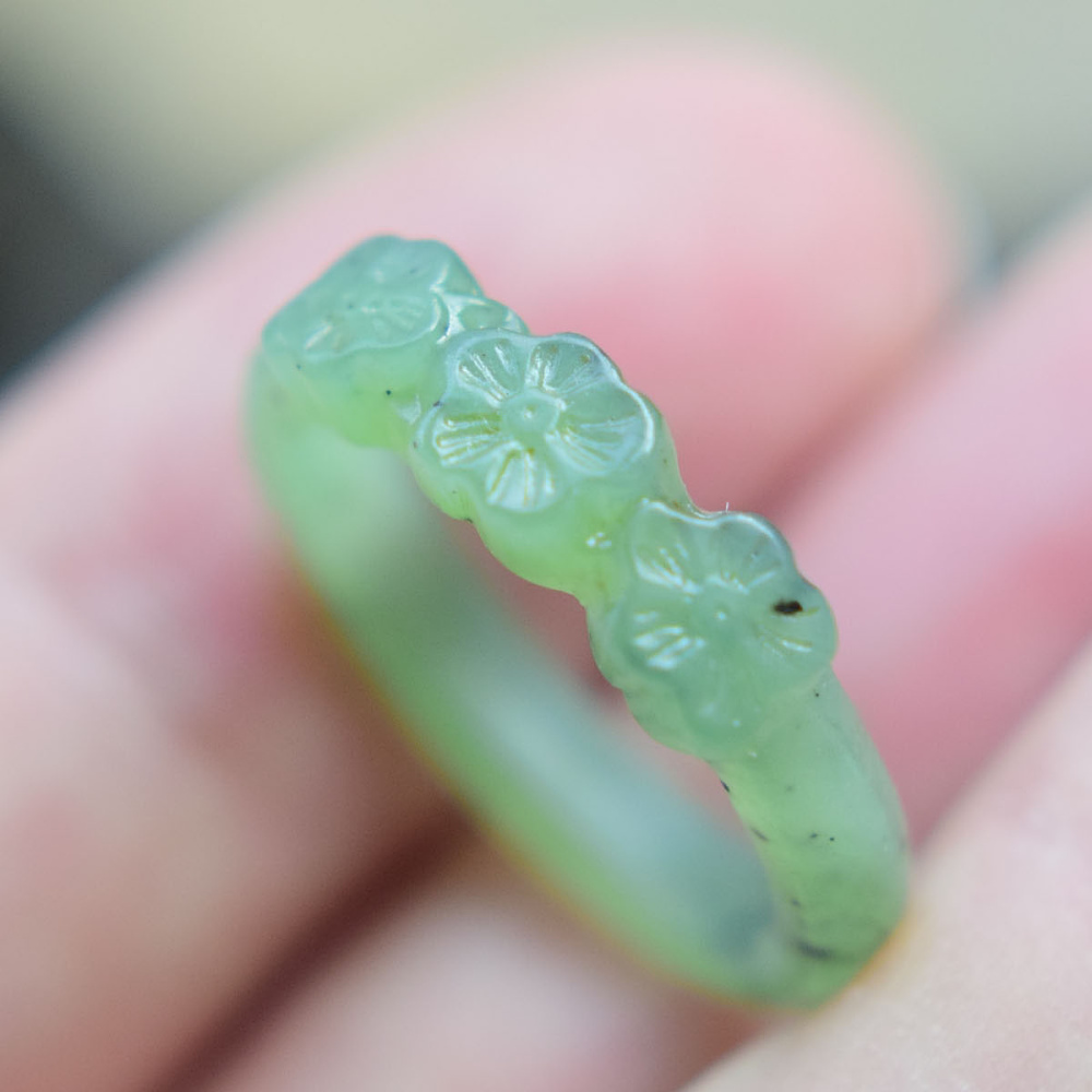 正宗保真纯天然女生和田玉碧玉绿色带证书玉石梅花戒指翠绿指环