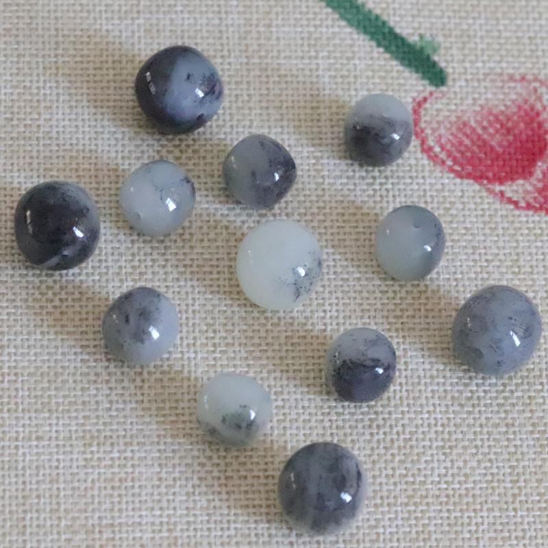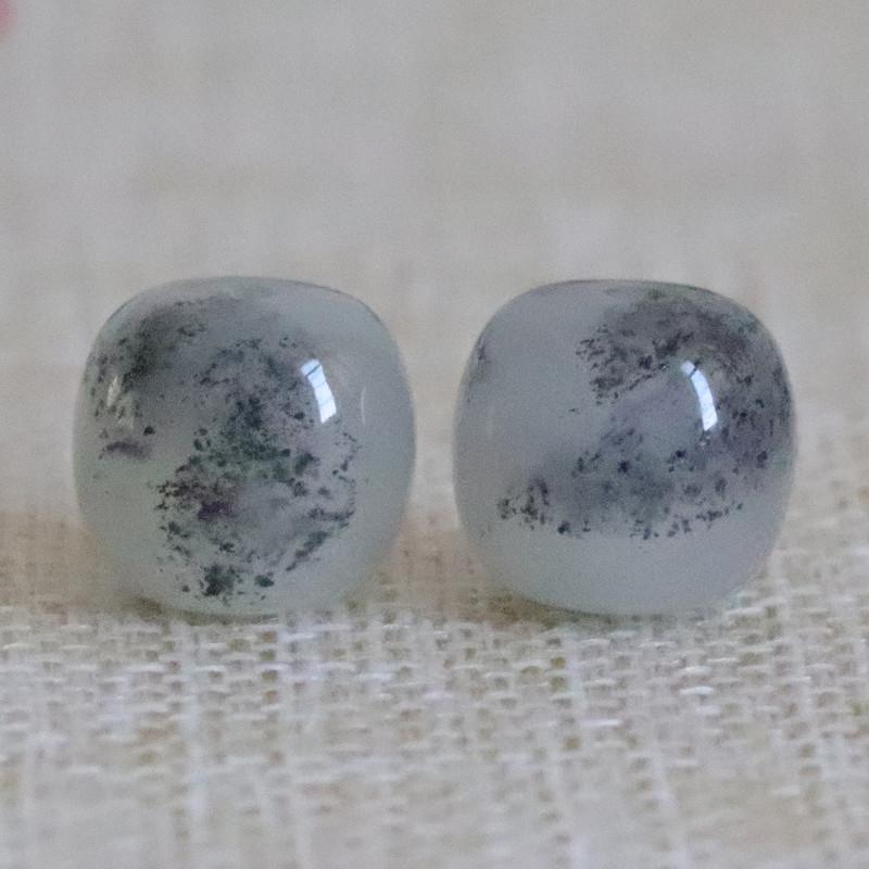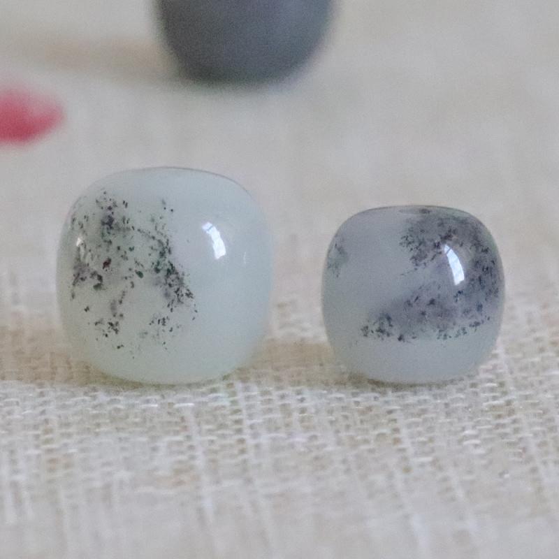 天然和田玉青花老型珠桶珠和田玉青花单珠玉石手串文玩散配珠
