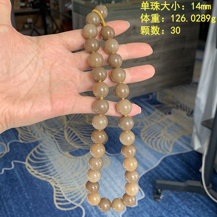 N14mm稀有糖玉籽料圆珠项链有原皮朕®开仓新疆和田玉