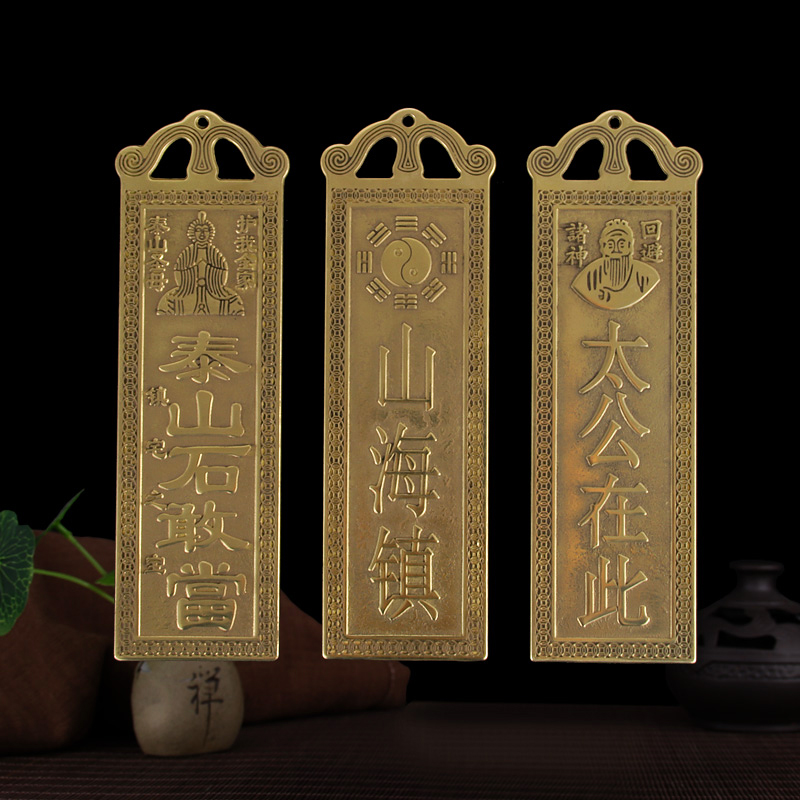 铜天官赐福吉星高照山海镇太公在此泰山石敢当补角铜挂牌挂件摆件