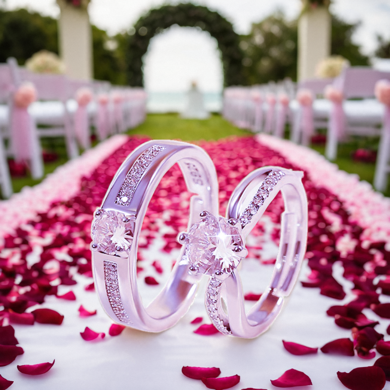 仿真钻戒情侣款结婚对戒婚礼仪式用假道具女戒指可调节活口戒子男