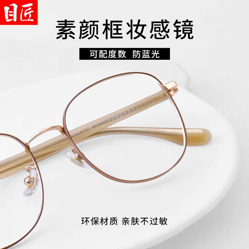 超轻奶茶色近视眼镜框女可配度数方圆脸金属边框素颜小框小脸镜架