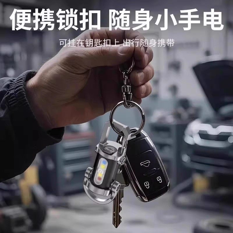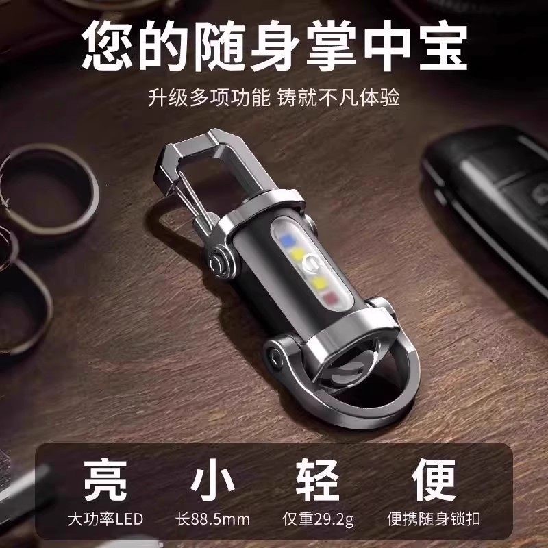 多功能户外应急钥匙扣照明灯便携式腰挂钥匙扣迷你手电筒充电防水
