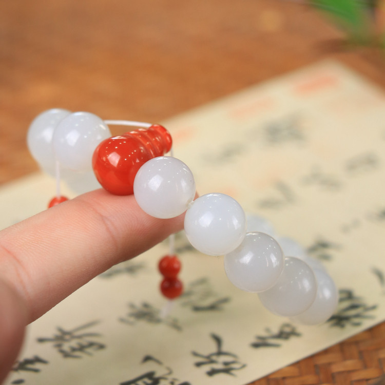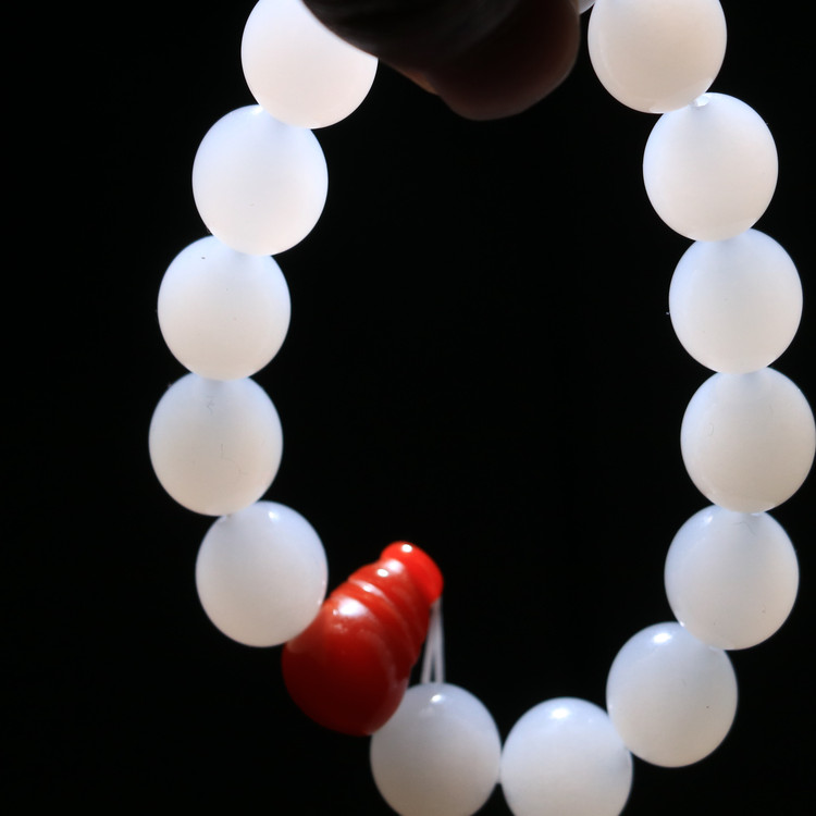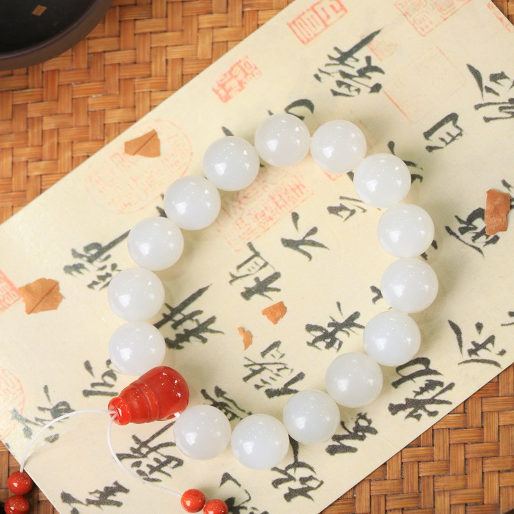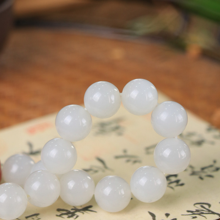 天然新疆和田玉山料羊脂级白玉12mm手串手链古风男女手饰收藏礼品