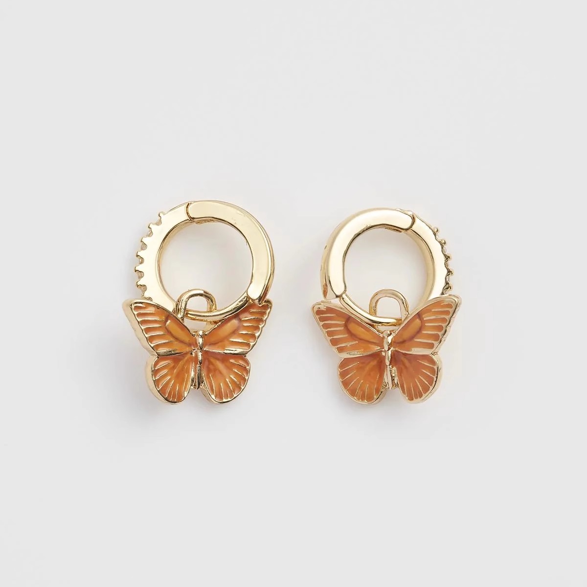 绝版 英国代购Fable England橘色蝴蝶项链耳环胸针 手工绘制珐琅
