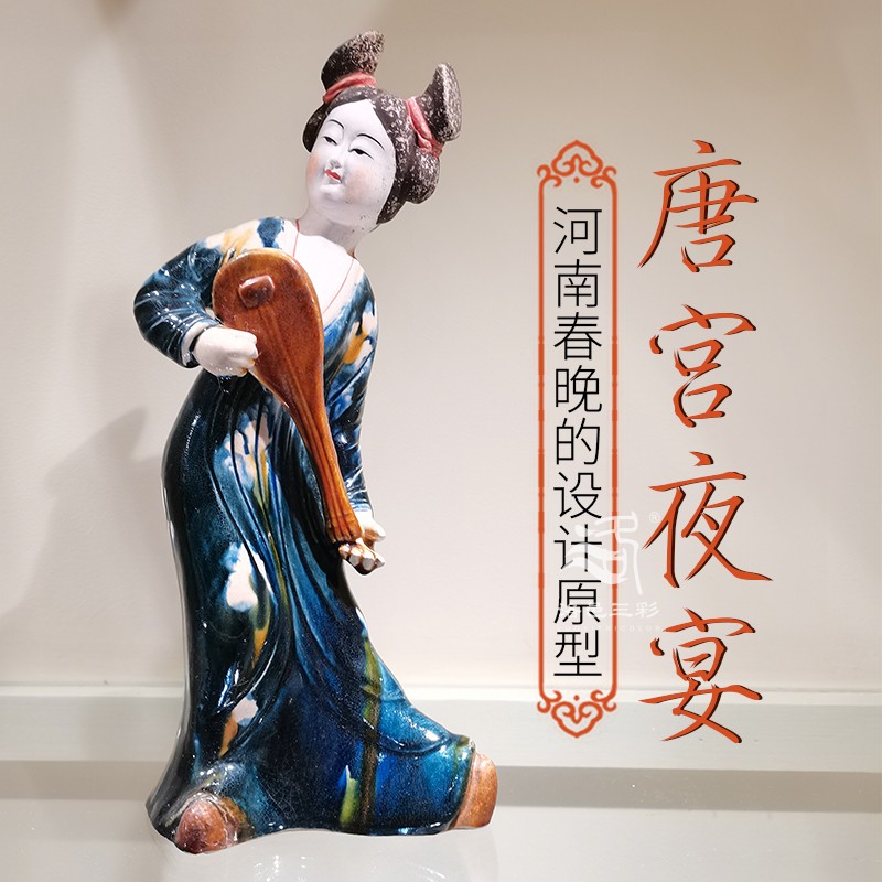唐宫夜宴唐三彩人物仕女胖妞高水旺七乐俑女陶瓷艺术收藏商务礼品