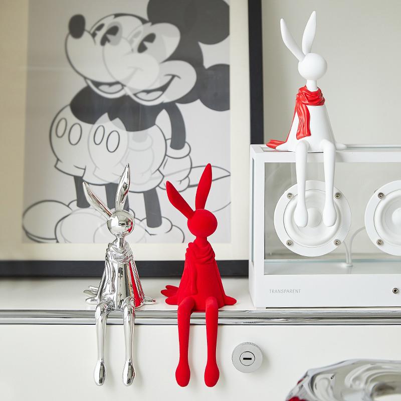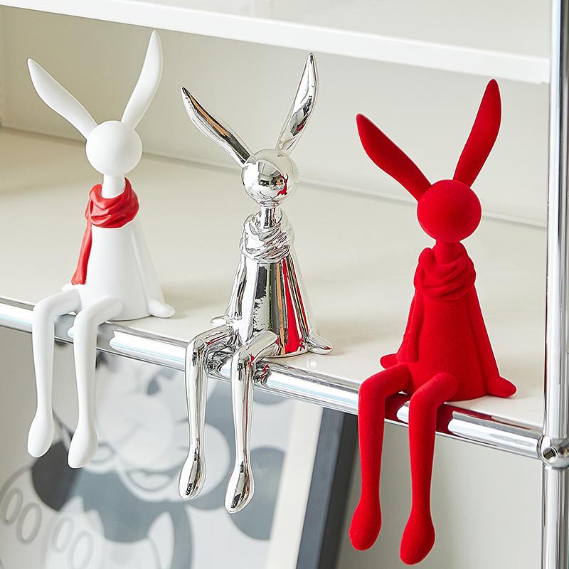 好货简约创意萌兔摆件家居客厅桌面电视柜玄关长耳吊脚坐姿兔子装