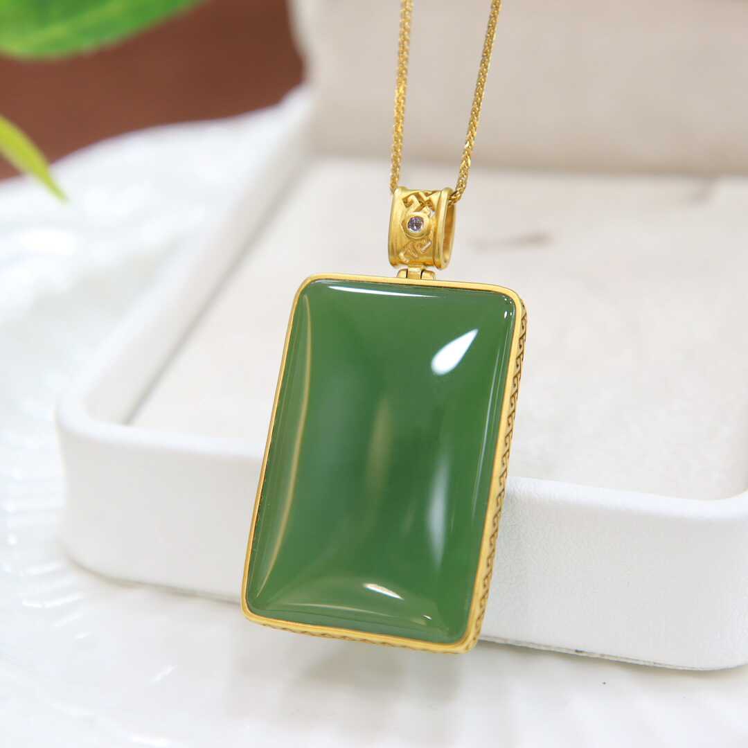 暑假礼品天然和田玉吊坠女a货粉青碧玉无事牌镶18k金挂件戒指冰底