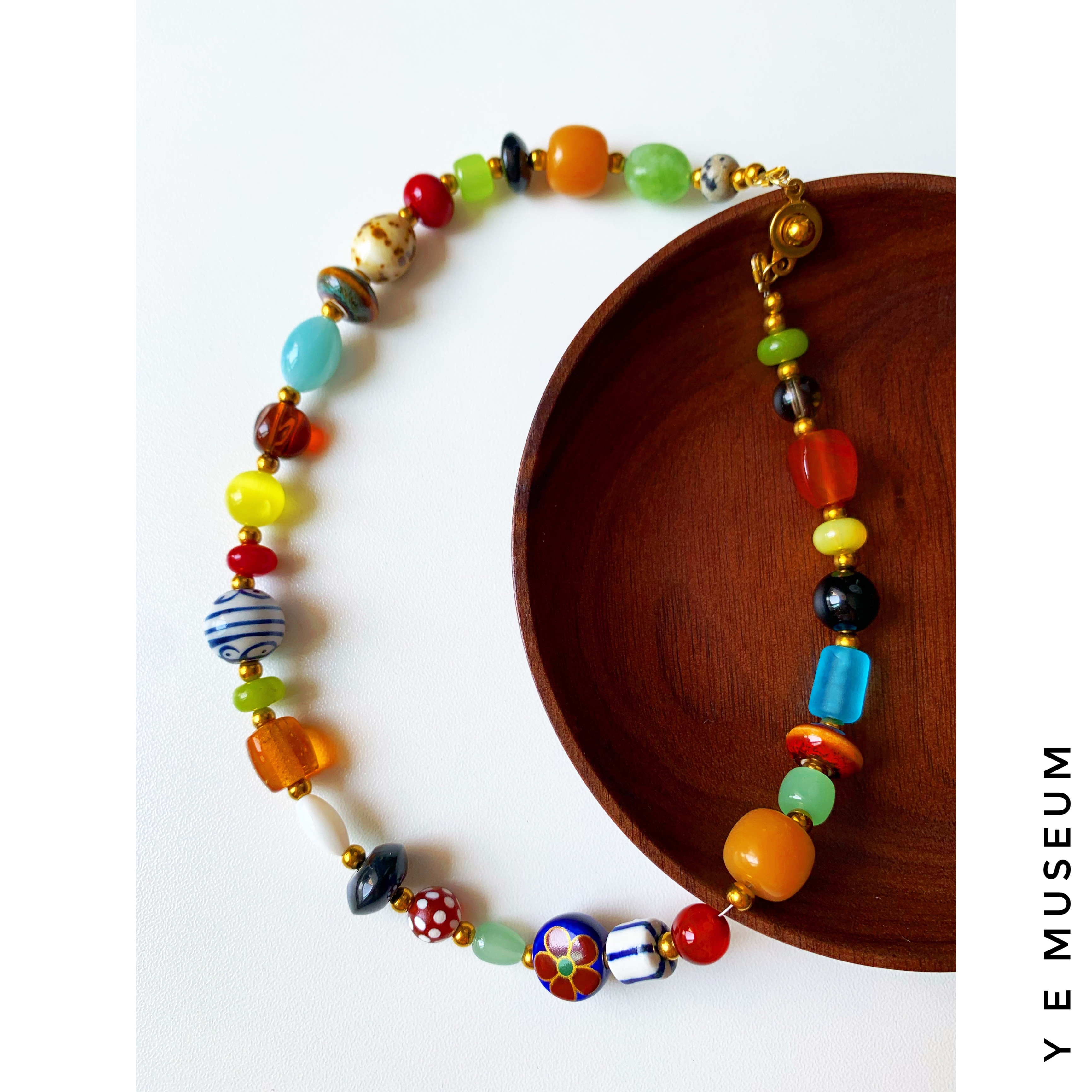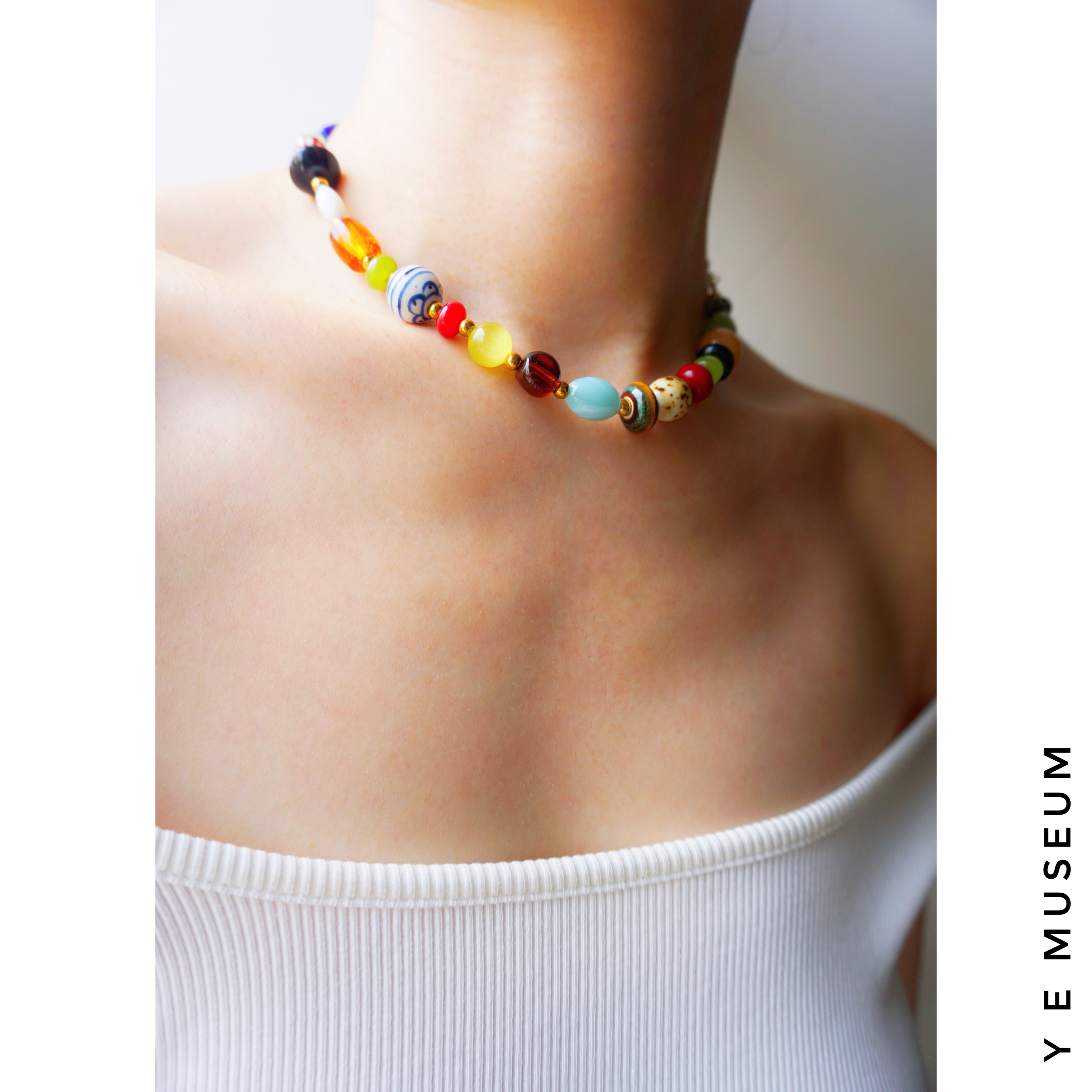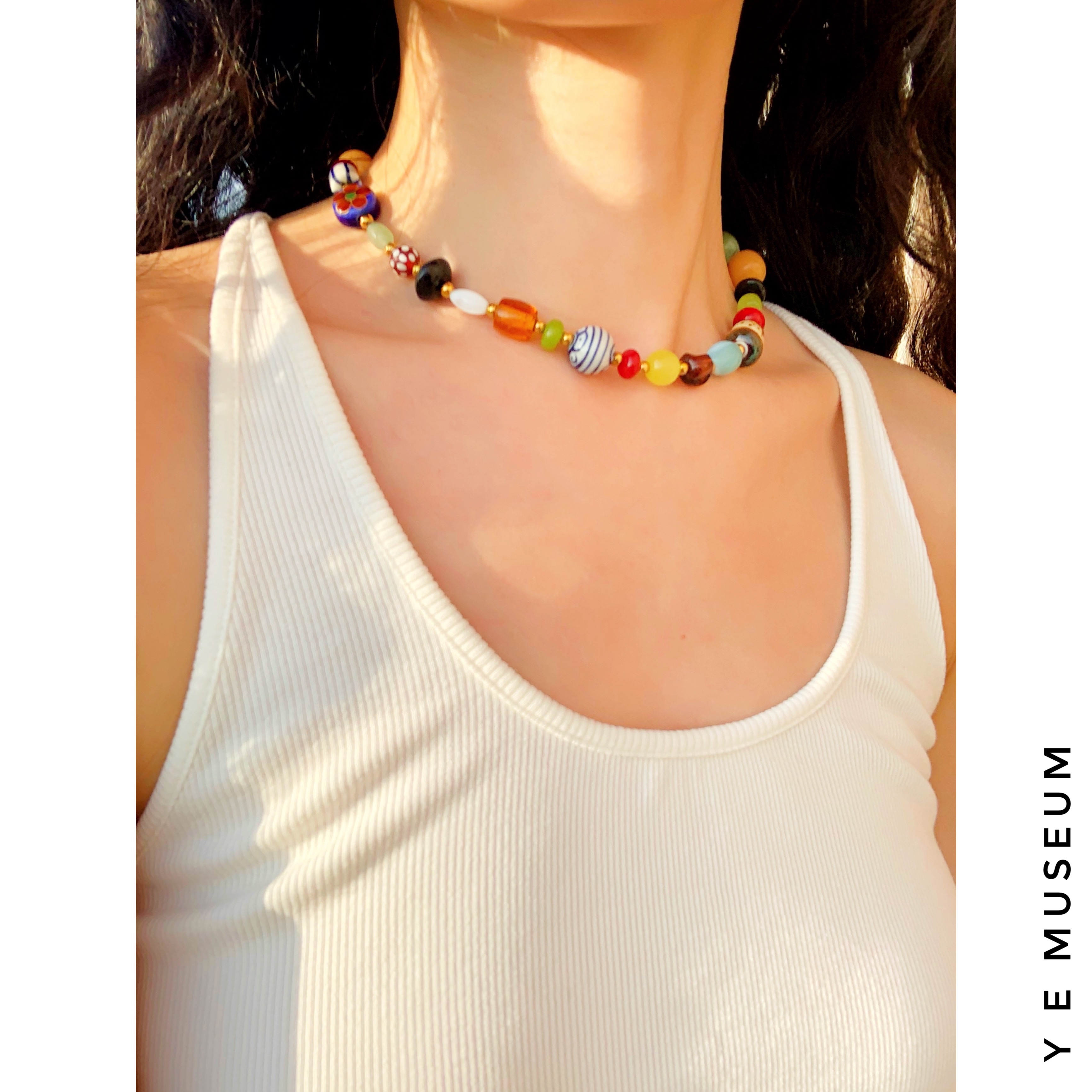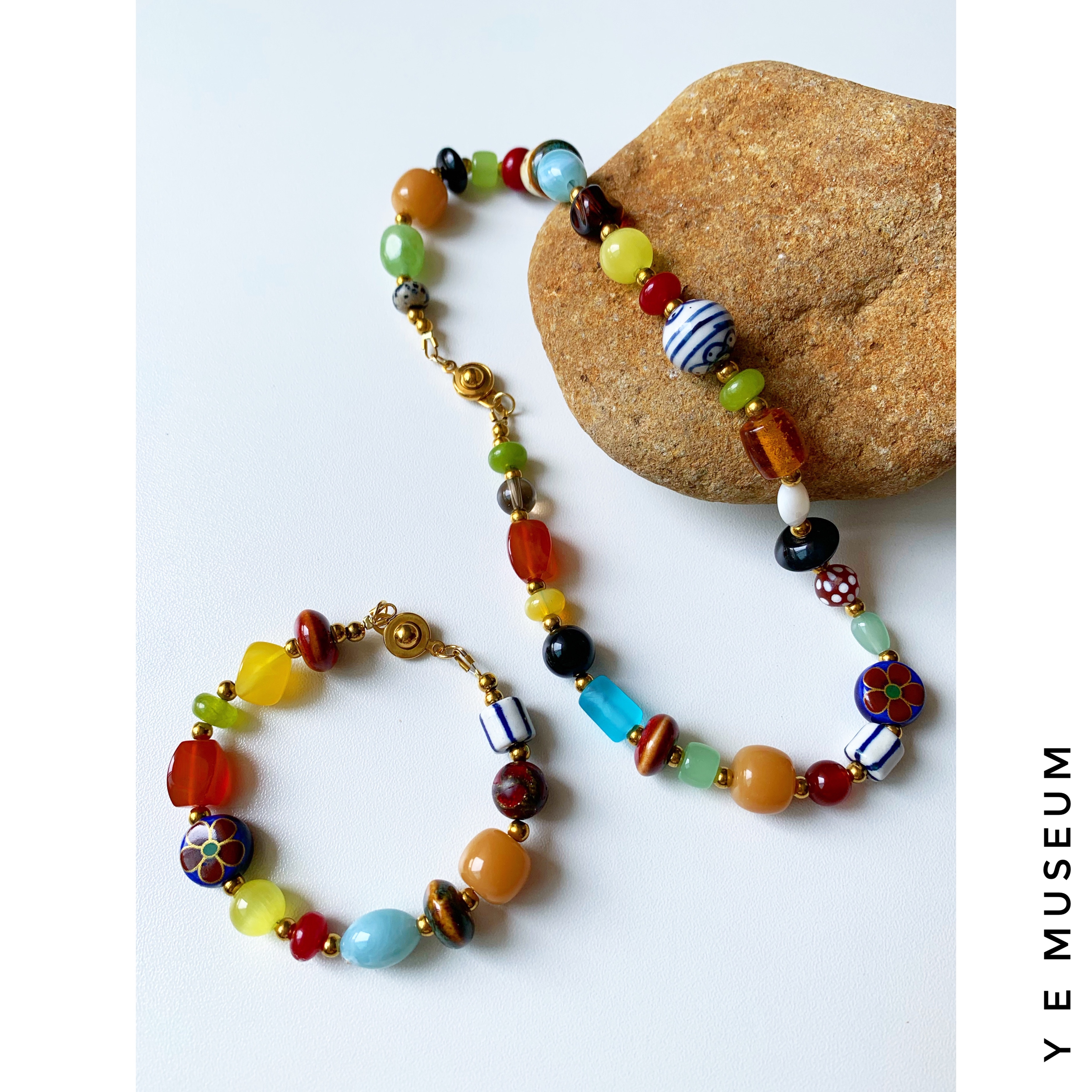 {鱼耳Museum}原创 “郭煌”系列复古撞色天然石陶瓷串珠项链手链