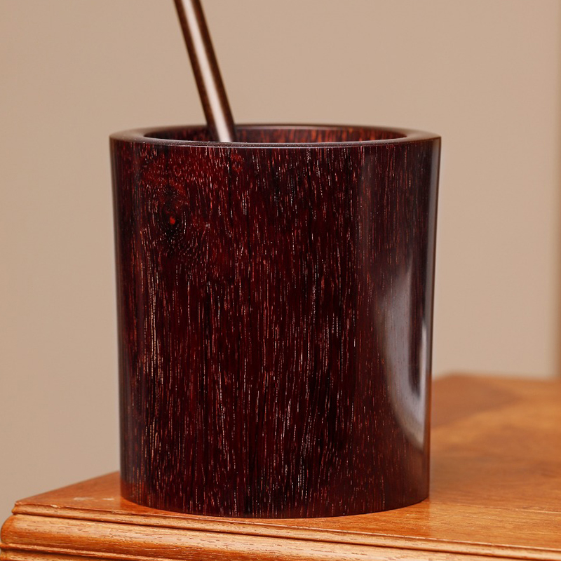 印度小叶紫檀笔筒高档办公室桌面笔筒中国风红木收纳摆件生日礼物