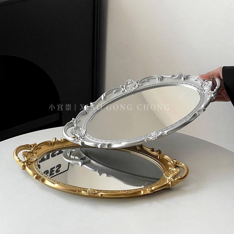 法式复古镜子托盘ns风客厅家用桌面摆件拍照道具首饰展示收纳盘