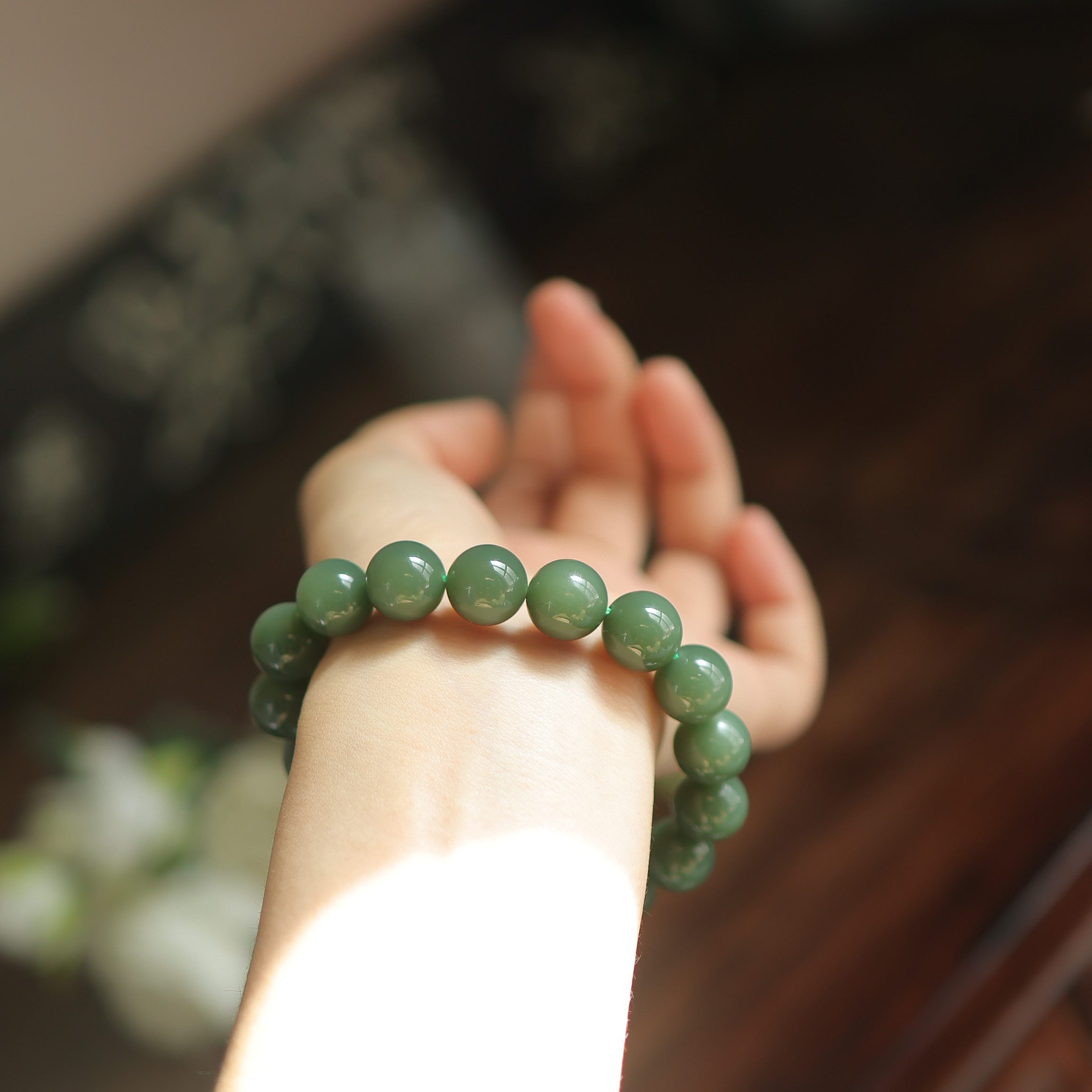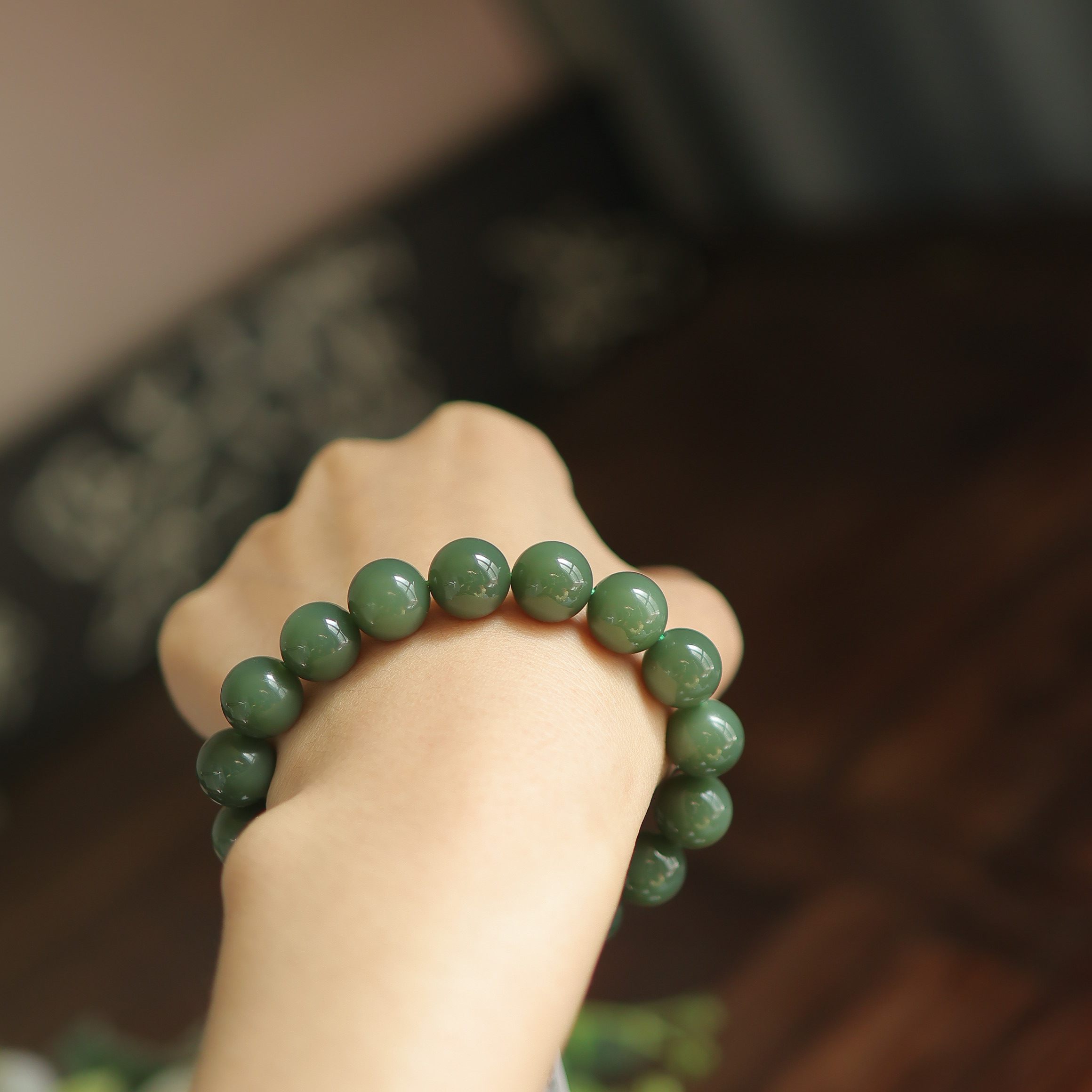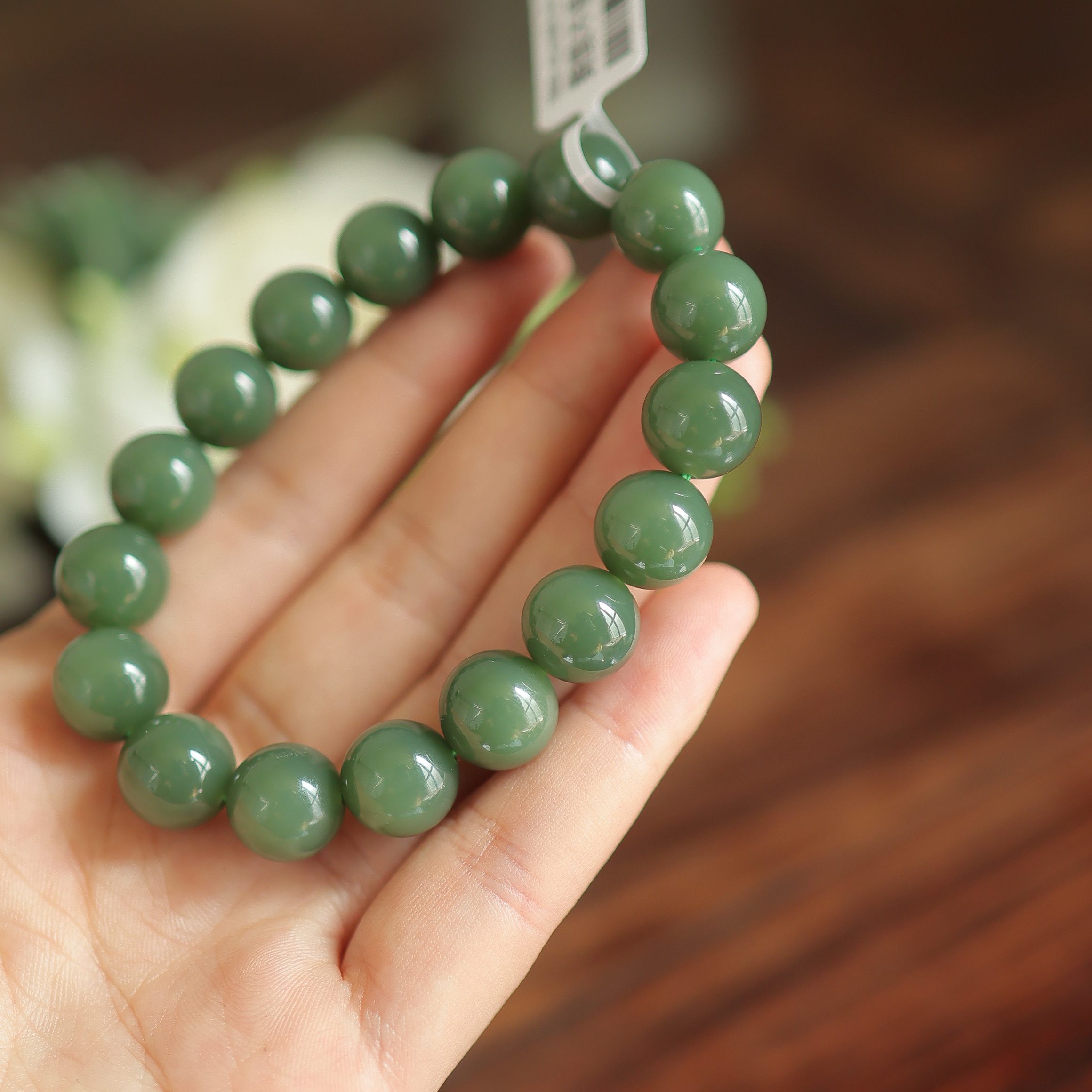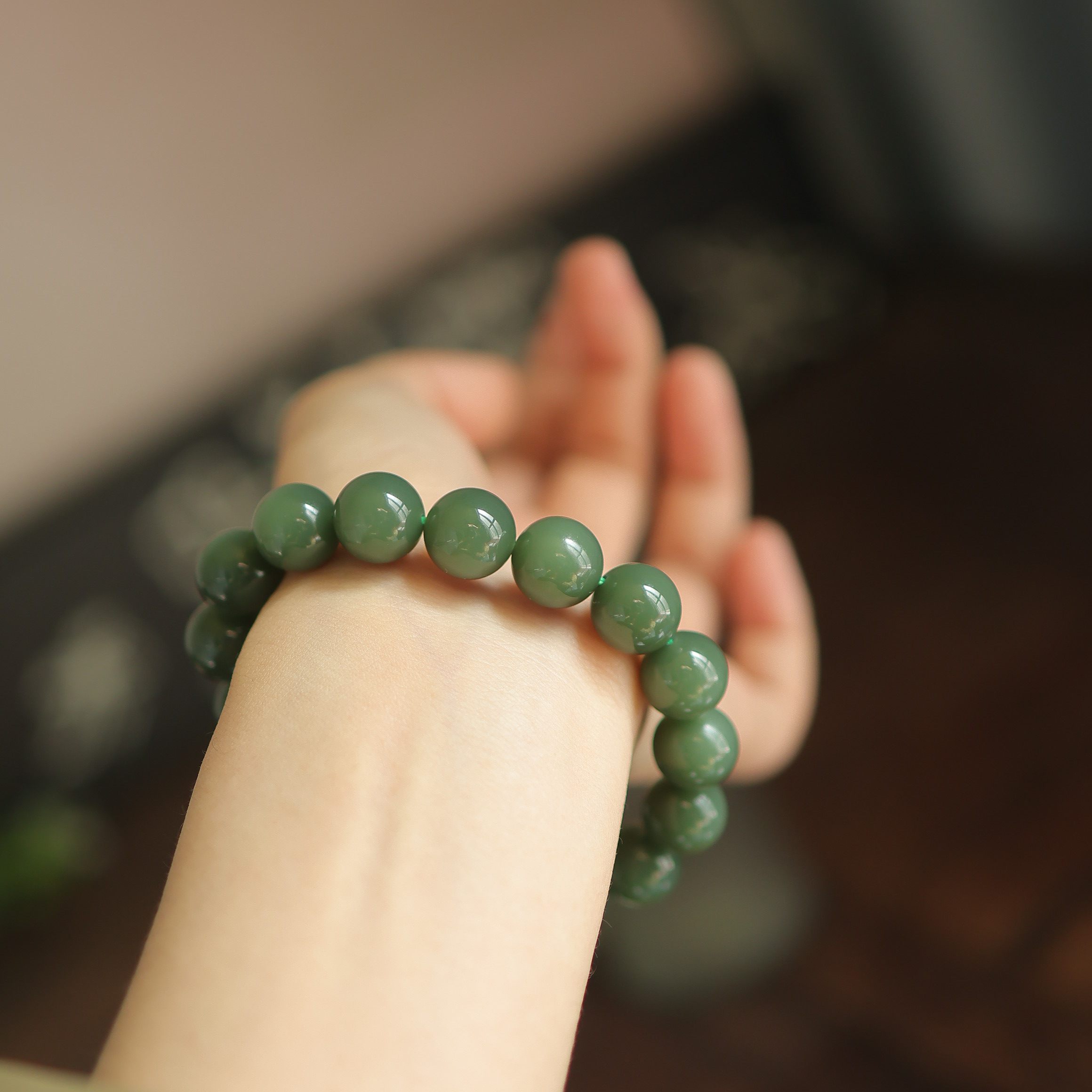 天然和田玉12mm粉青圆珠单圈匀净质感 送长辈 贵气感 货号15033